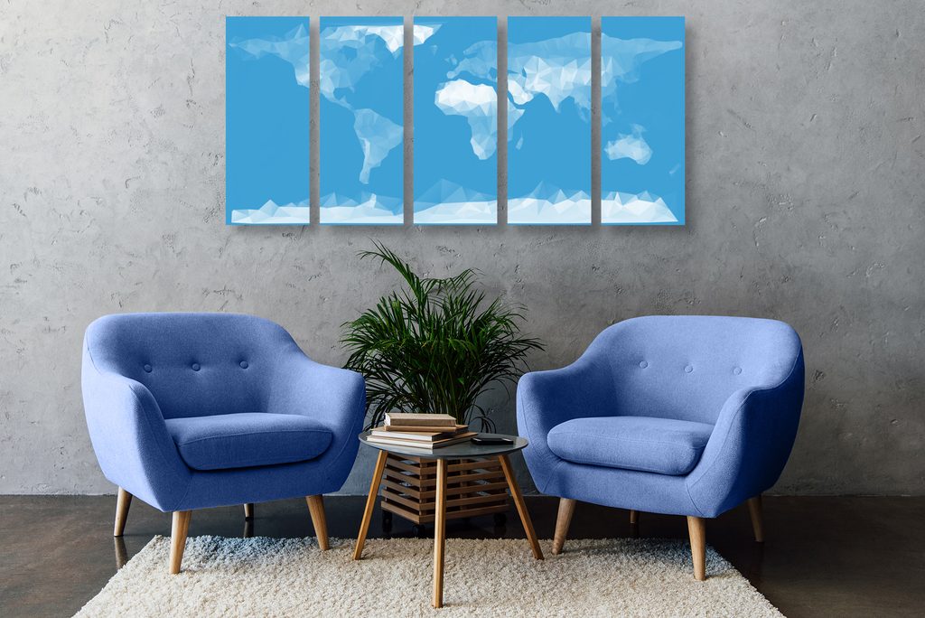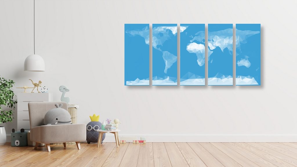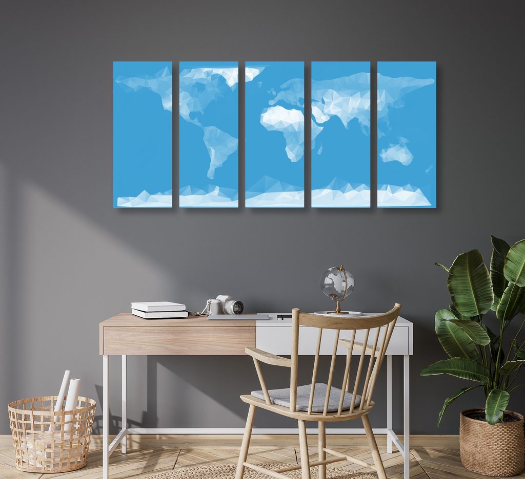 5-dielny obraz mapa sveta tvorená mnohouholníkmi