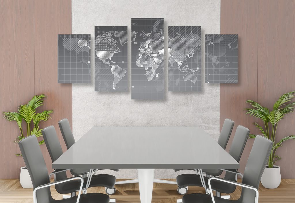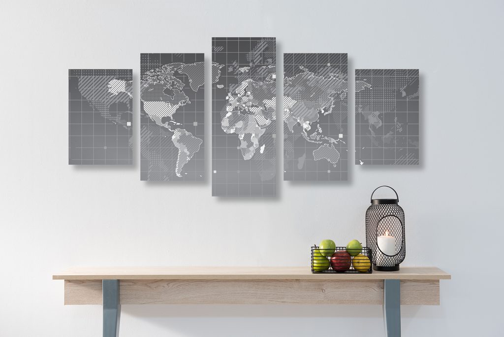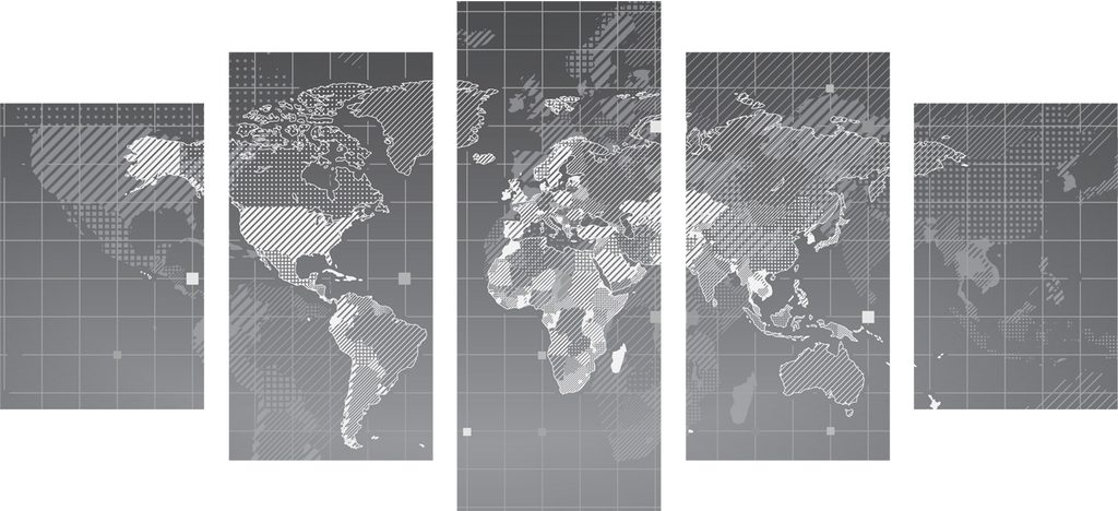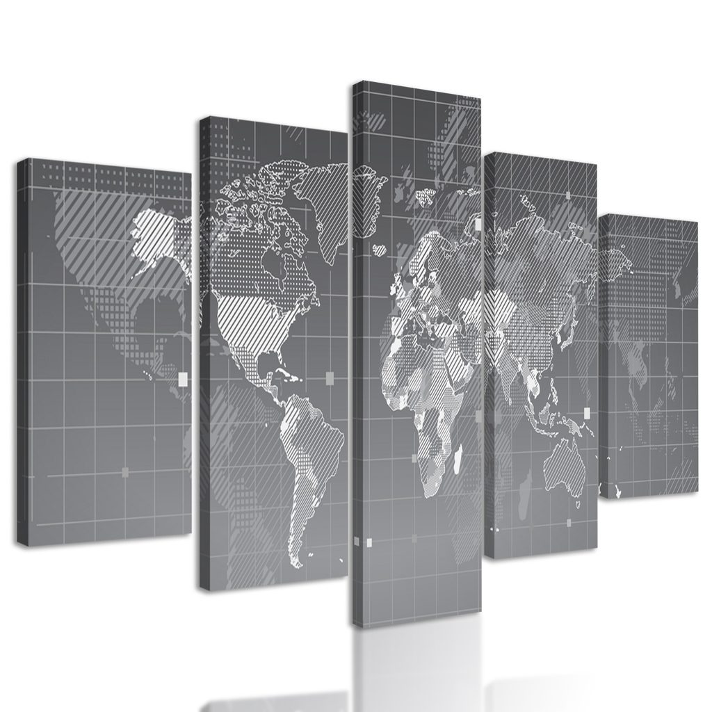 5-dielny obraz mapa sveta v modernom prevedení