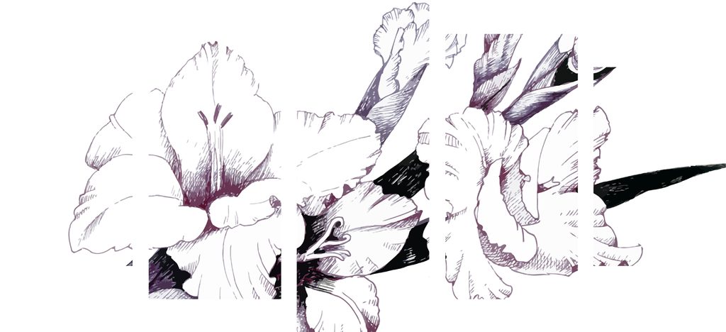 5-dielny obraz nežná ľalia v čiernobielom prevedení