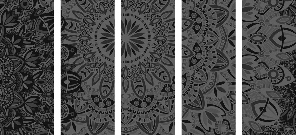 5-dielny obraz moderná Mandala v čiernobielom prevedení