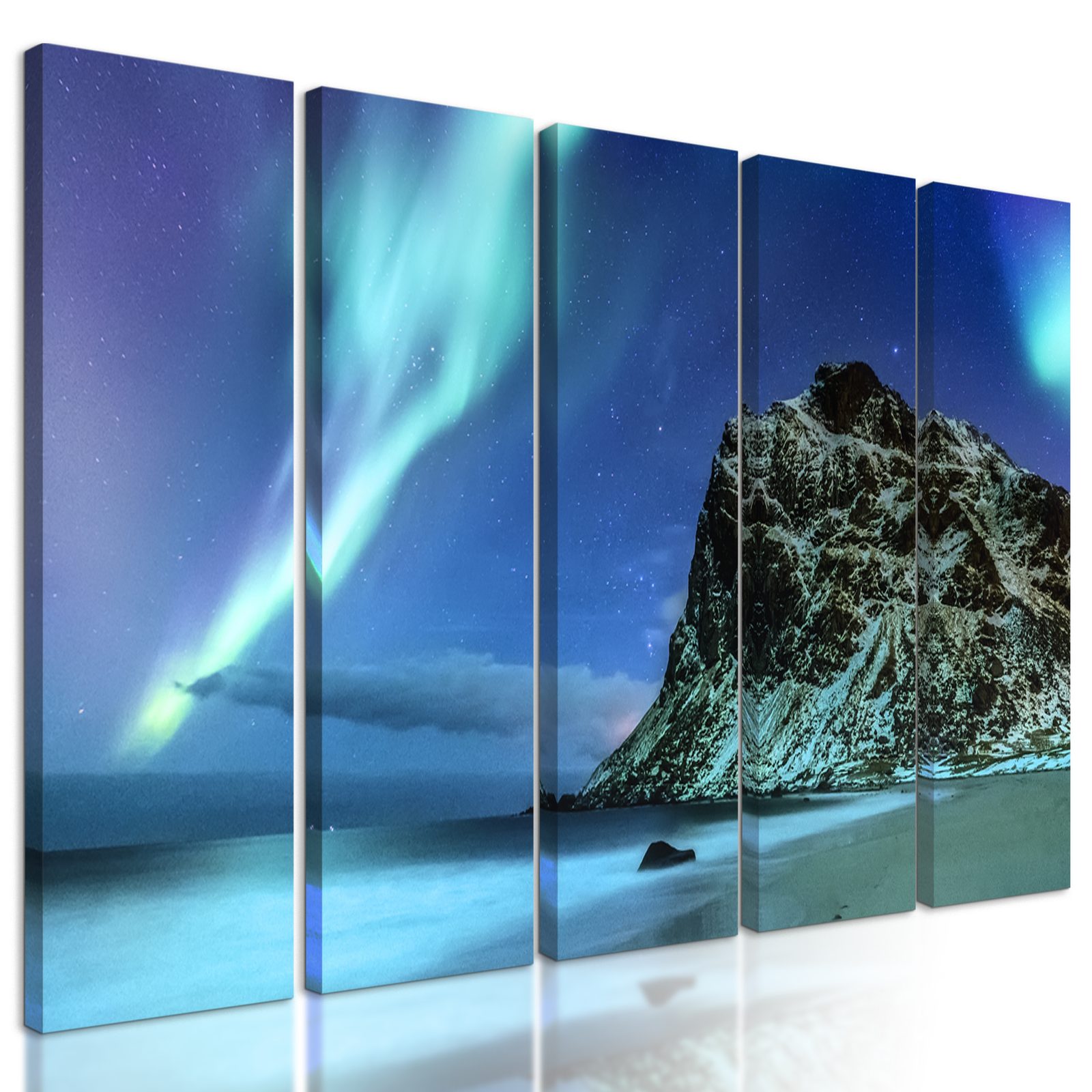 5-dielny obraz modro-zelená polárna žiara v Nórsku