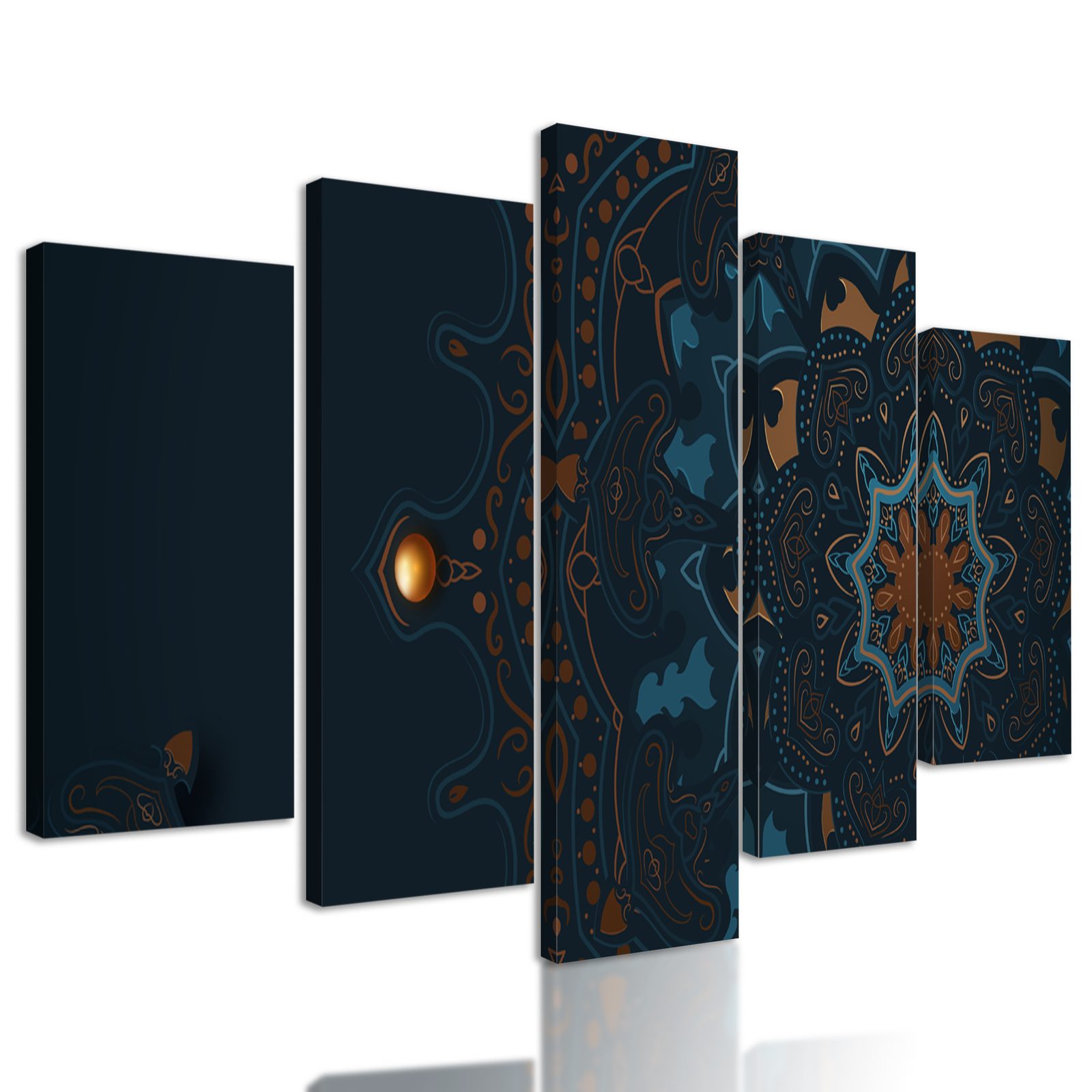5-dielny obraz strieborná mandala v čiernobielom prevedení
