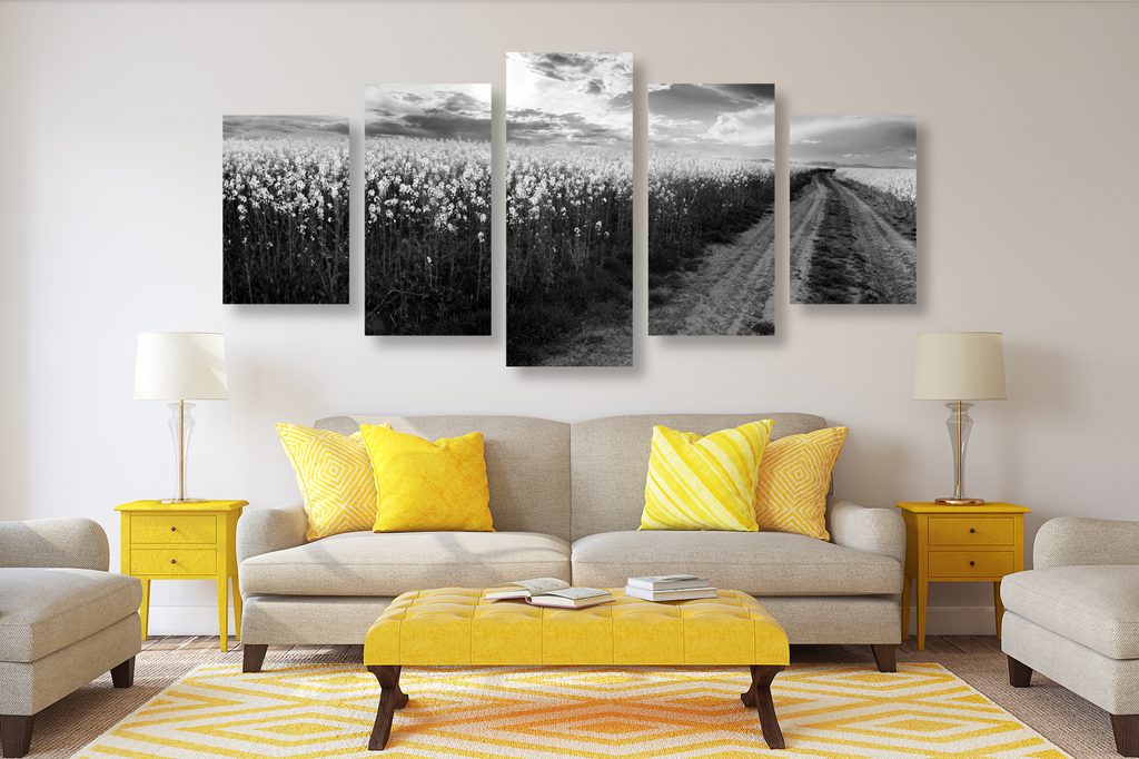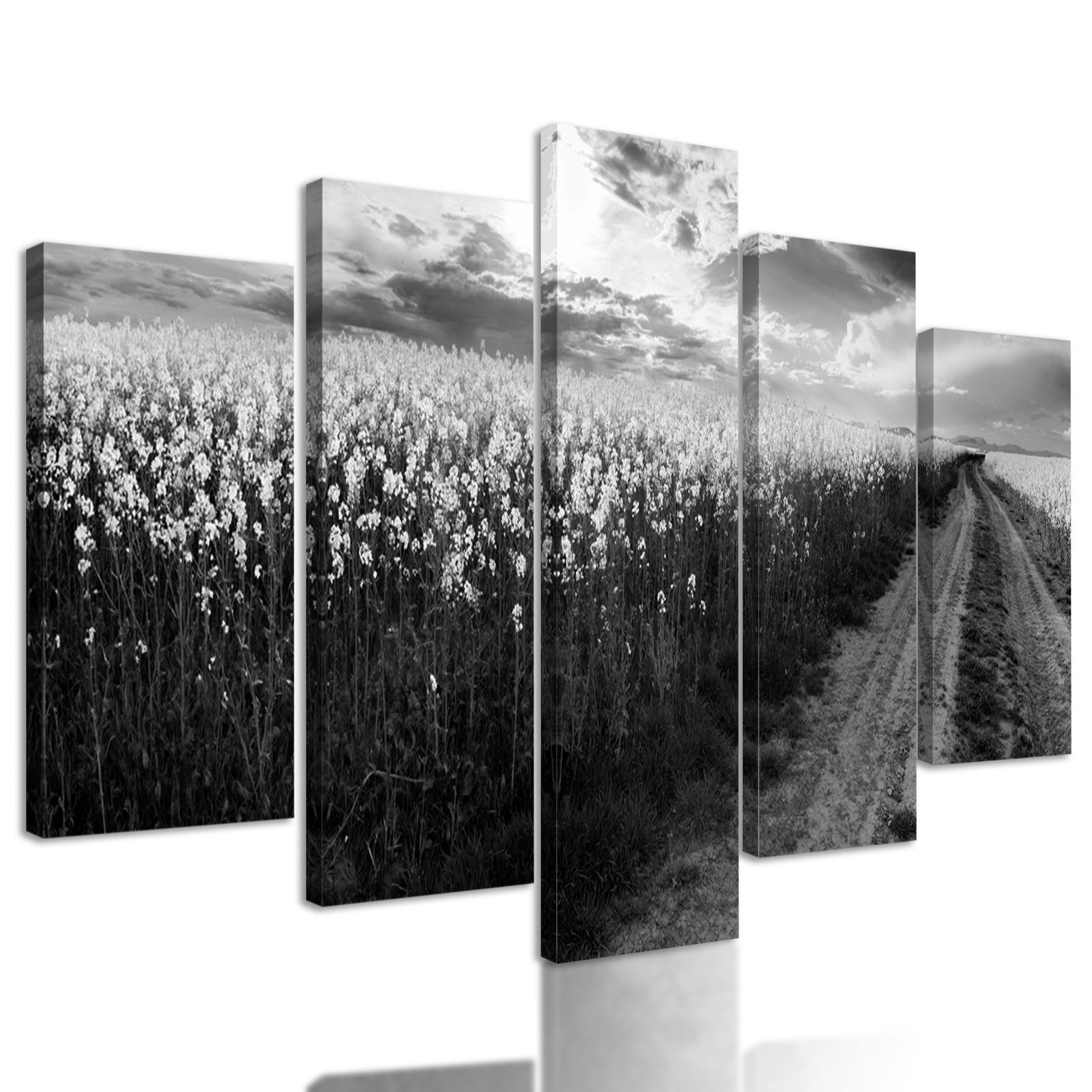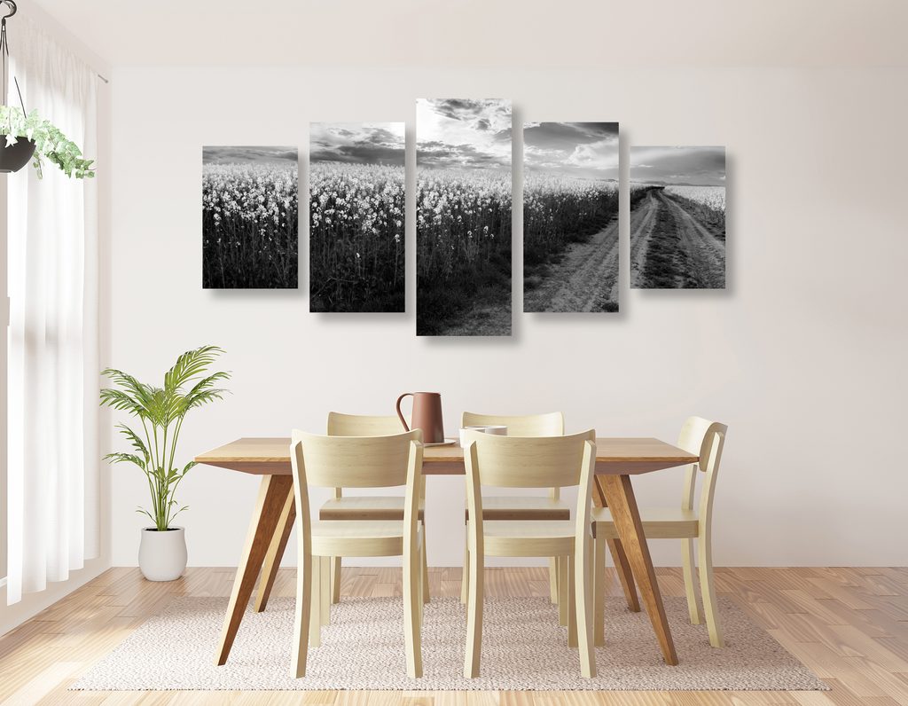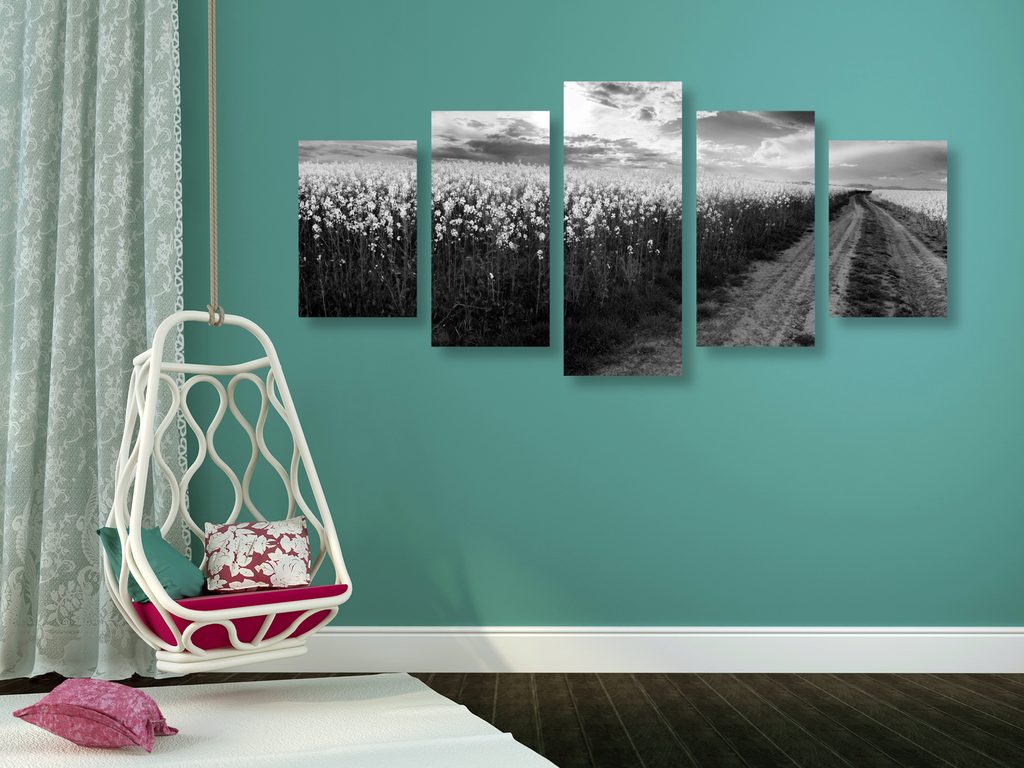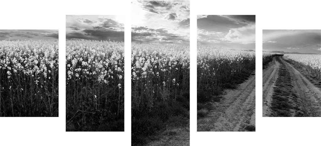 5-dielny obraz nádherná cestička v strede poľa v čiernobielom prevedení