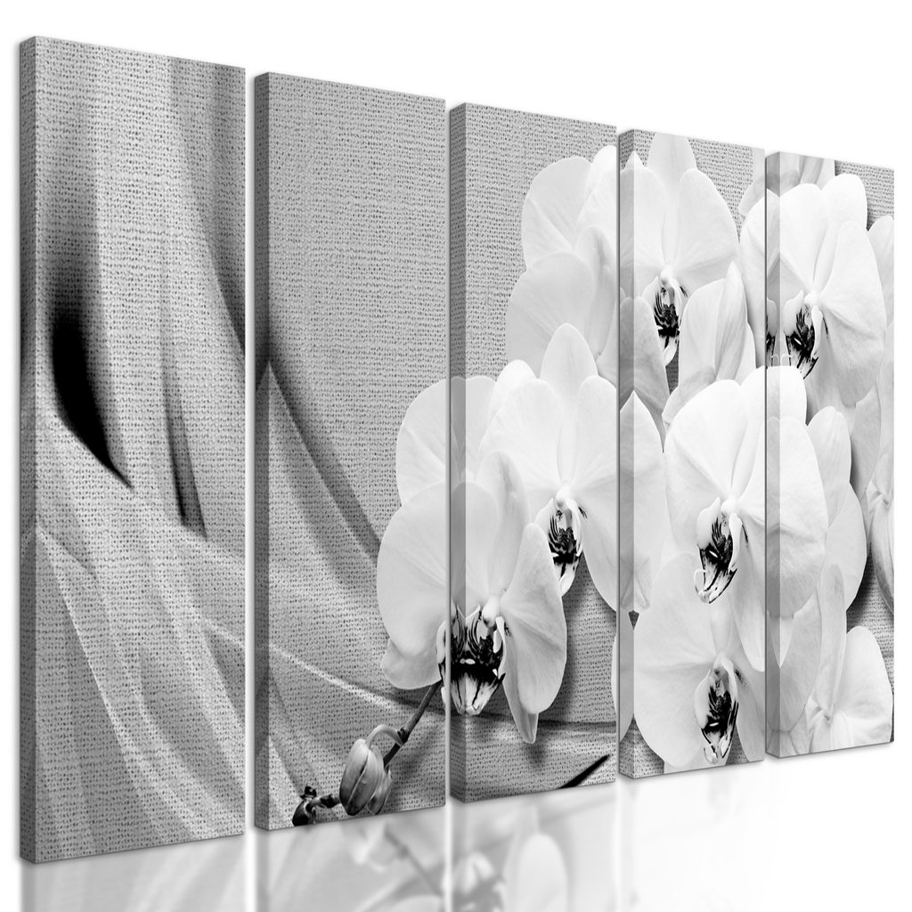 5-dielny obraz nádherná čiernobiela orchidea