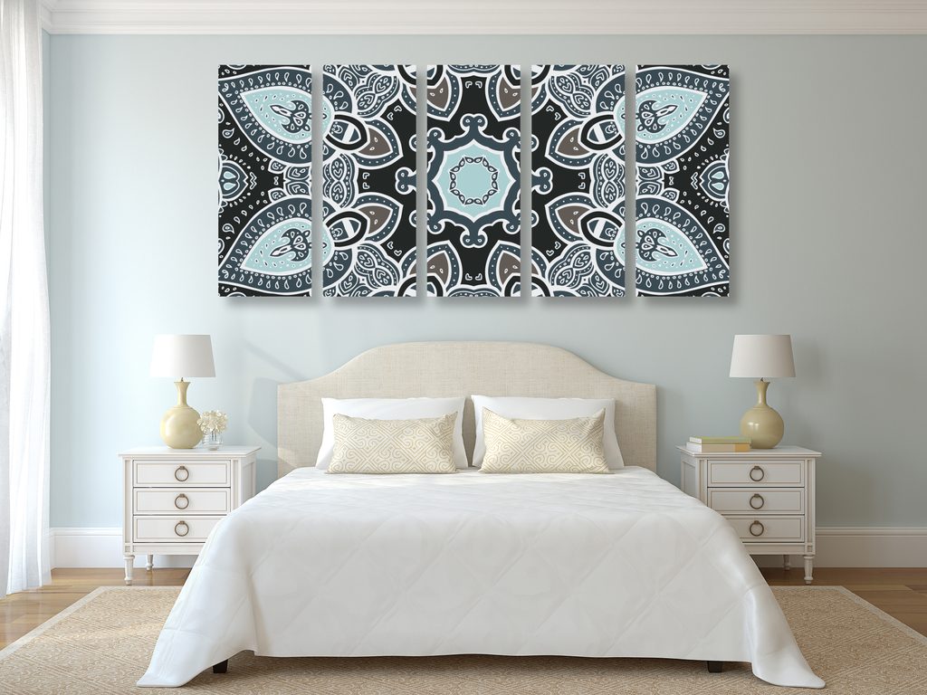5-dielny obraz zaujímavá čiernobiela Mandala