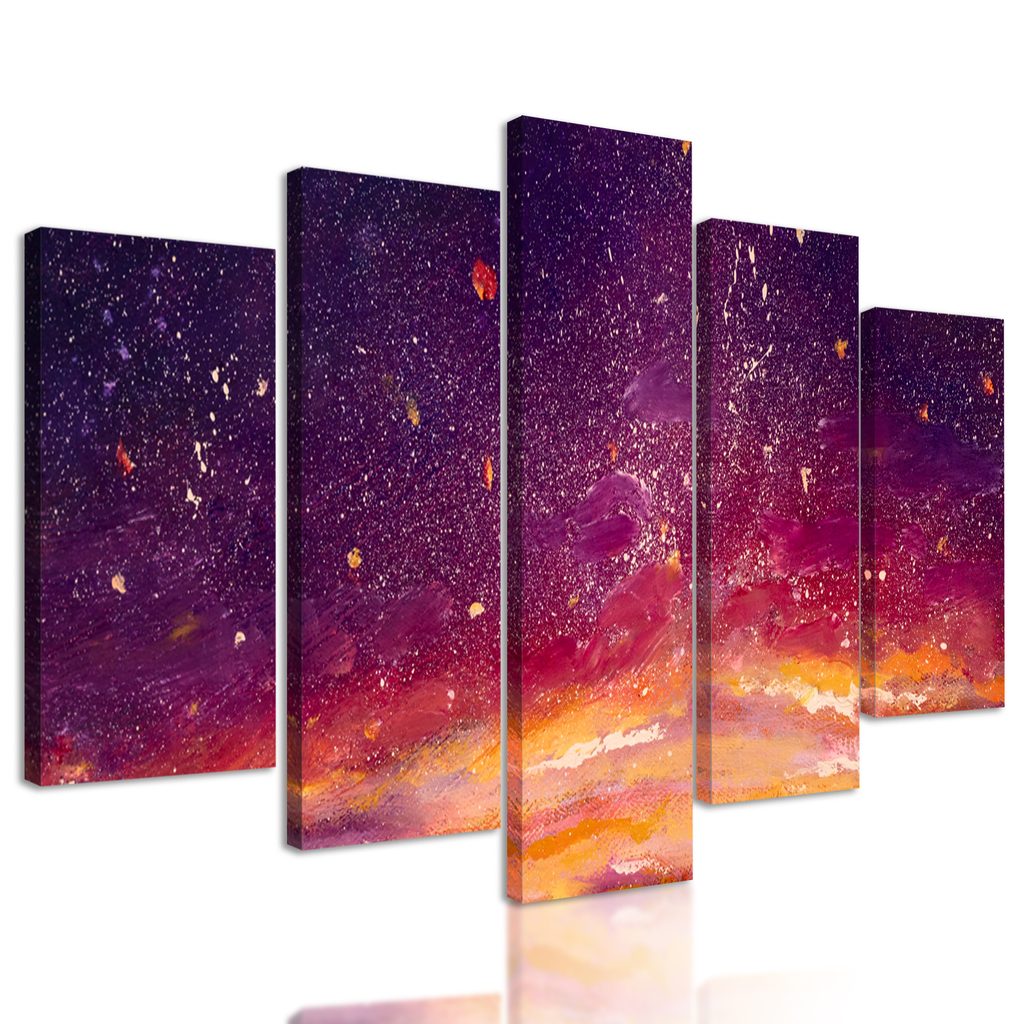 5-dielny obraz nádherná maľba zapádajúceho slnka za pole