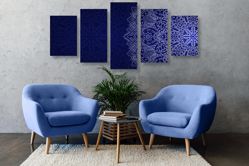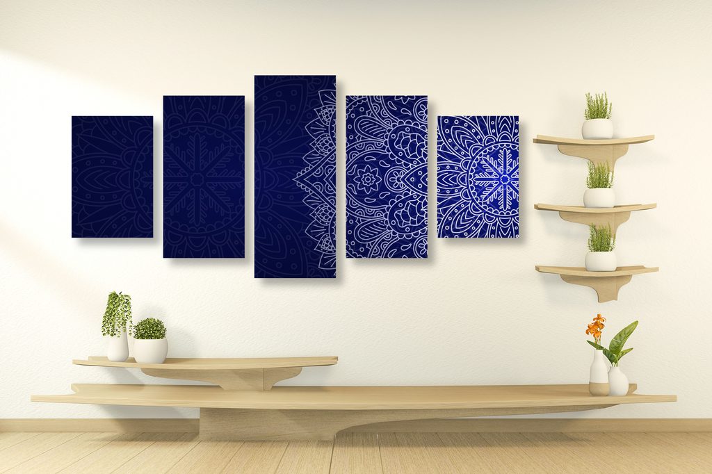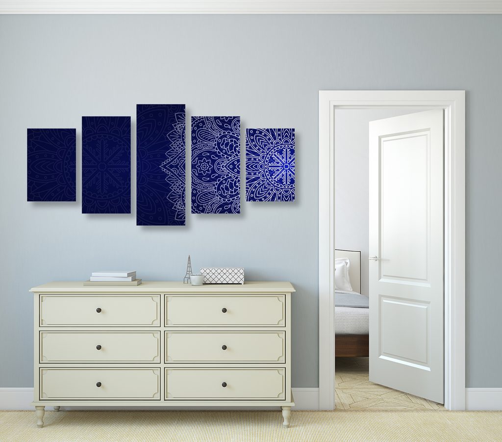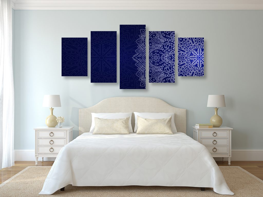 5-dielny obraz nádherná mandala na tmavomodrom pozadí