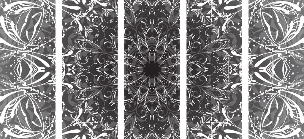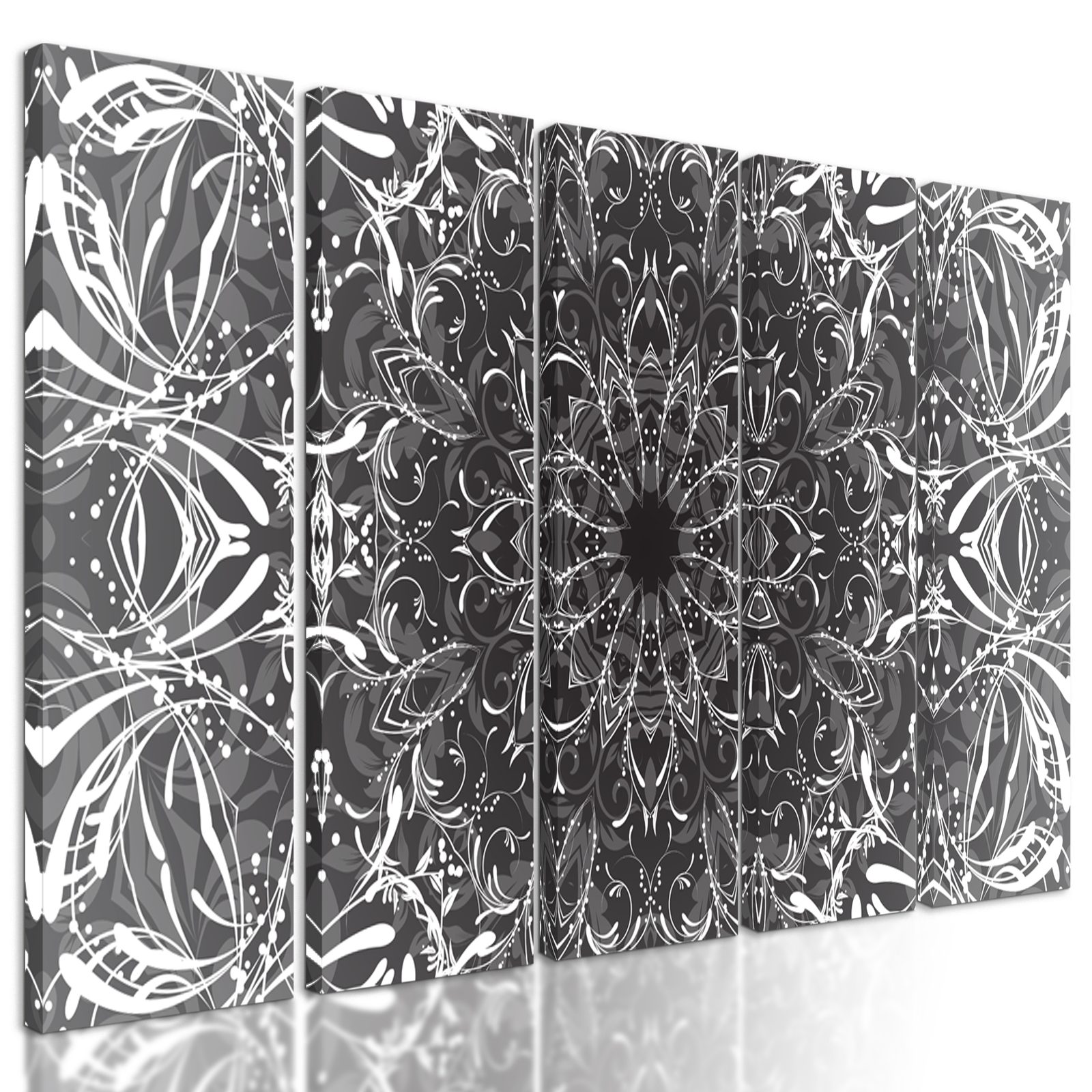 5-dielny obraz nádherná Mandala v čiernobielom prevedení