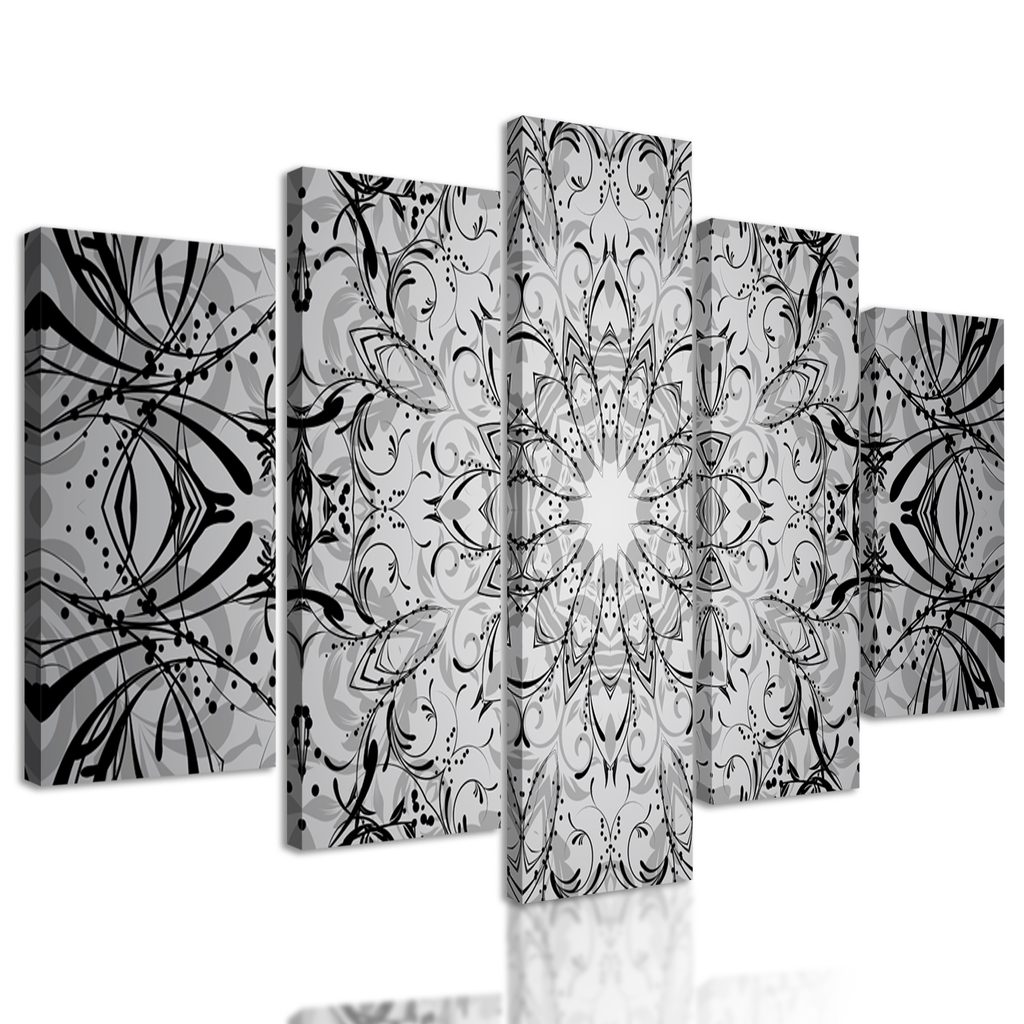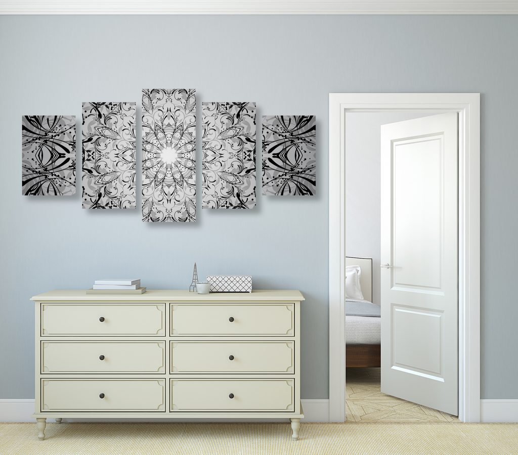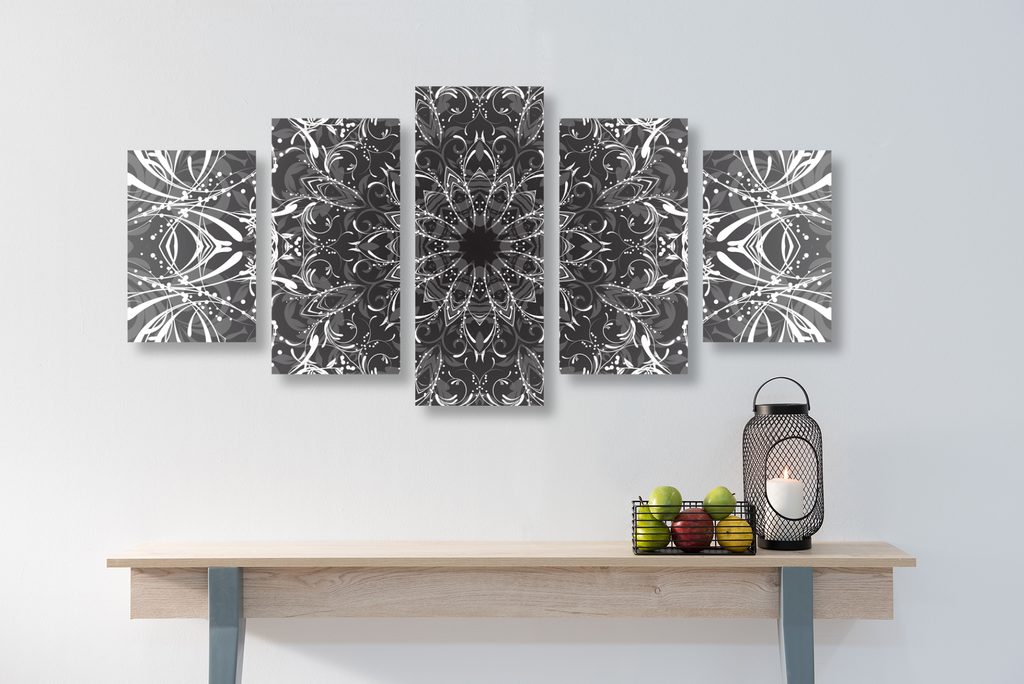 5-dielny obraz Zen svätyňa v čiernobielom prevedení