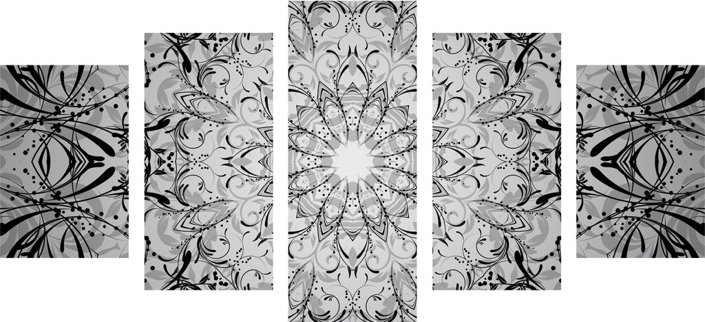 5-dielny obraz krásy prírody v čiernobielom prevedení