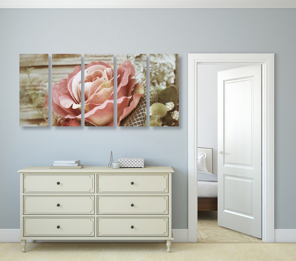 5-dielny obraz nádherná ružová ruža