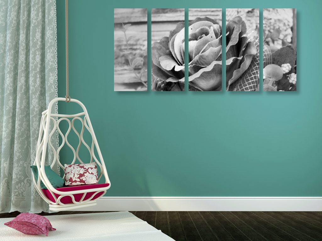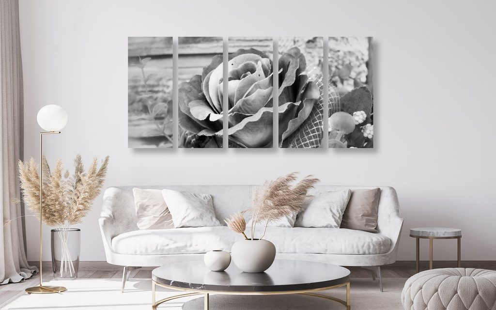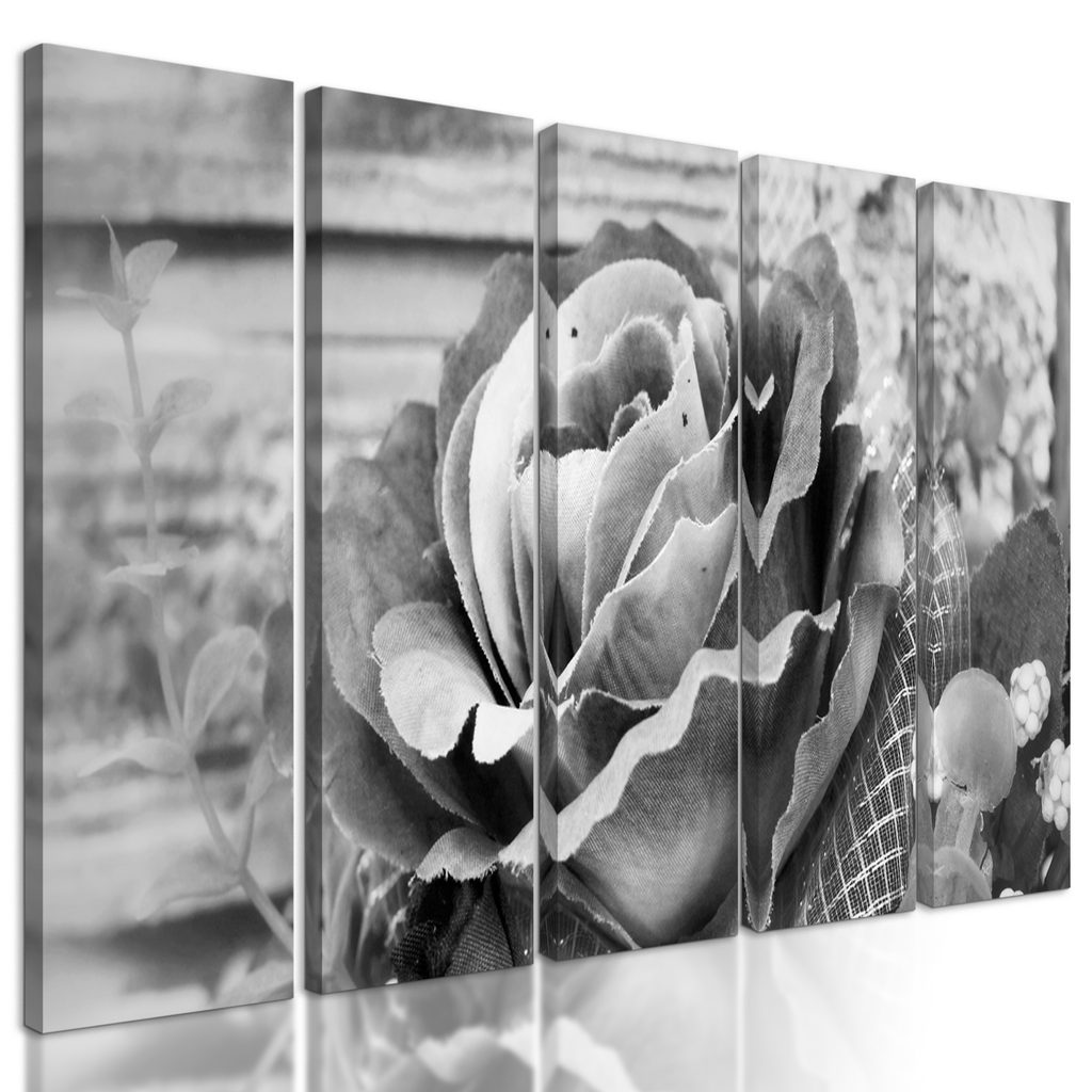 5-dielny obraz nádherná ružová ruža v čiernobielom prevedení