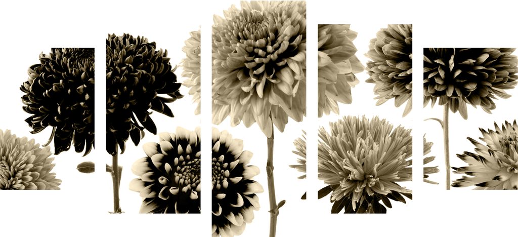 5-dielny obraz nádherné dálie v sépiovom prevedení