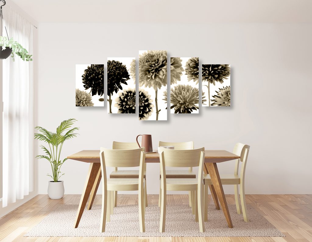 5-dielny obraz malé ružičky v čiernobielom prevedení