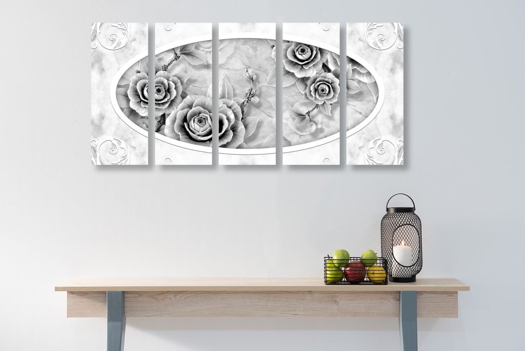 5-dielny obraz nádherná sviatočná kytica v čiernobielom prevedení