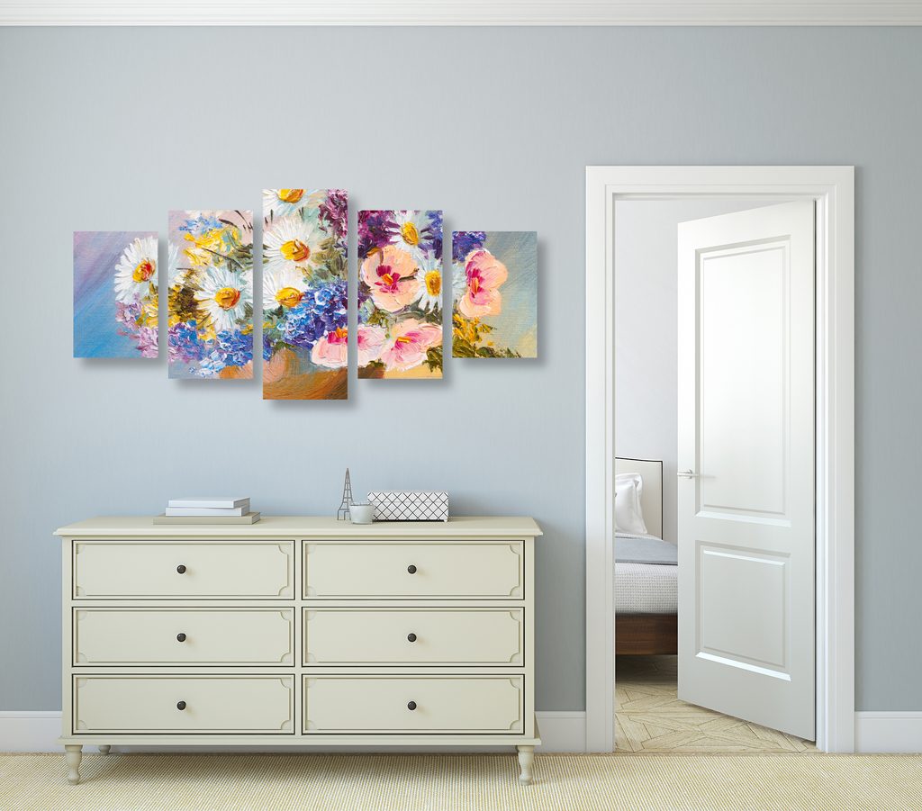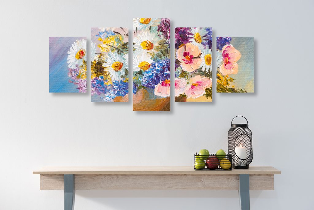 5-dielny obraz olejomaľba lúky plnej kvetov