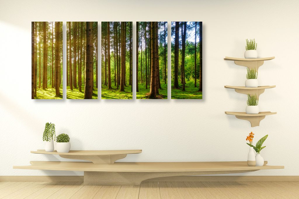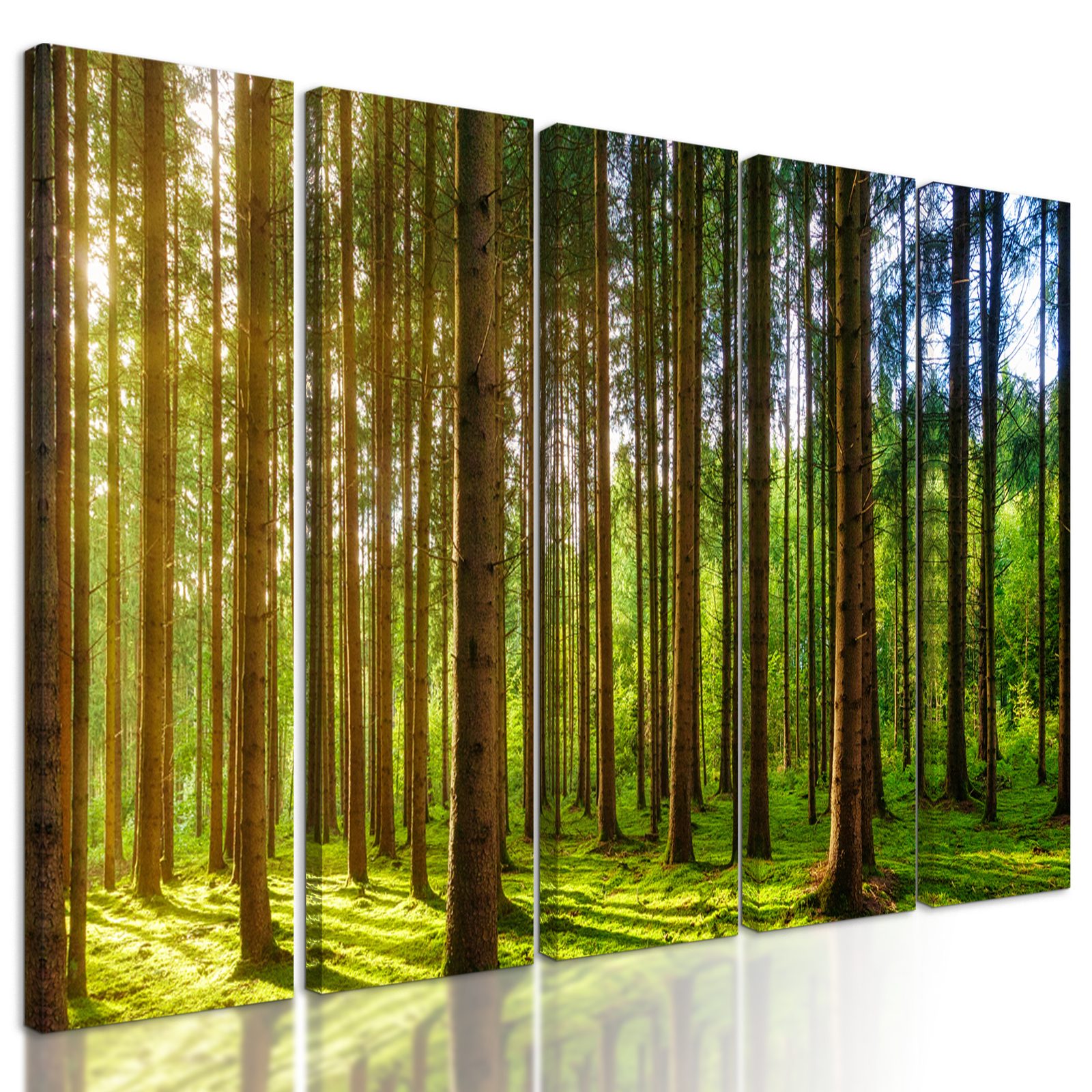 5-dielny obraz nádherné lúče slnka medzi stromami