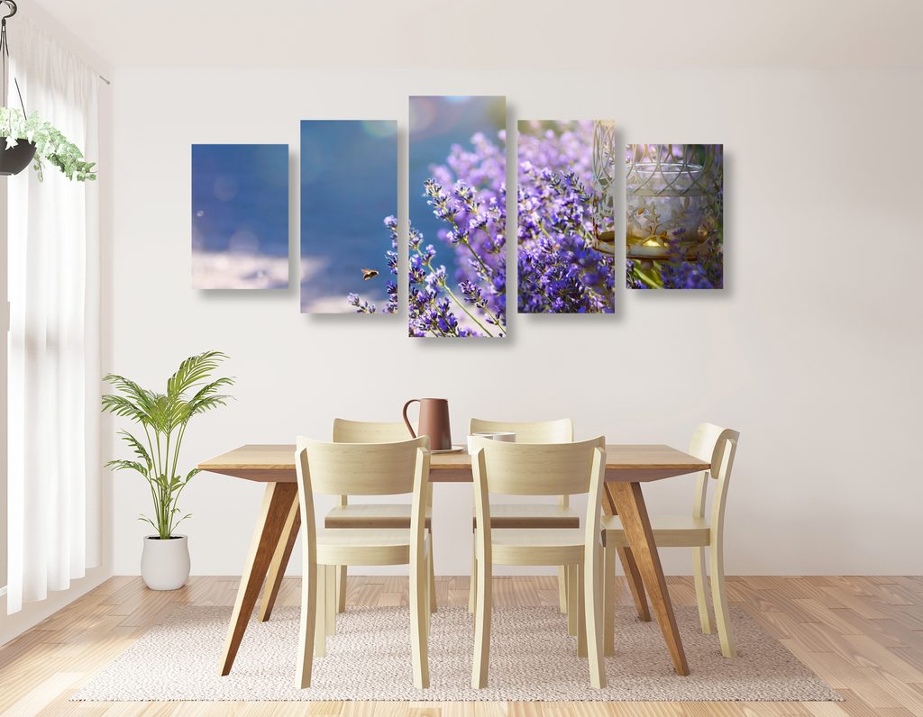5-dielny obraz nádherné modro-fialové kvety levandule