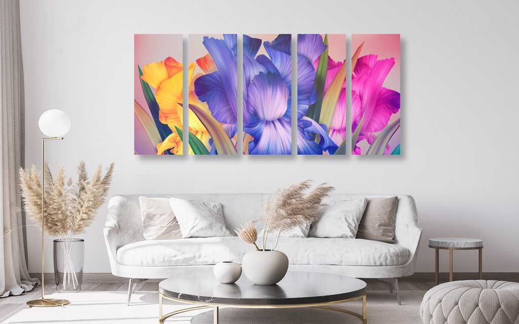 5-dielny obraz nádherné pestrofarebné kvety