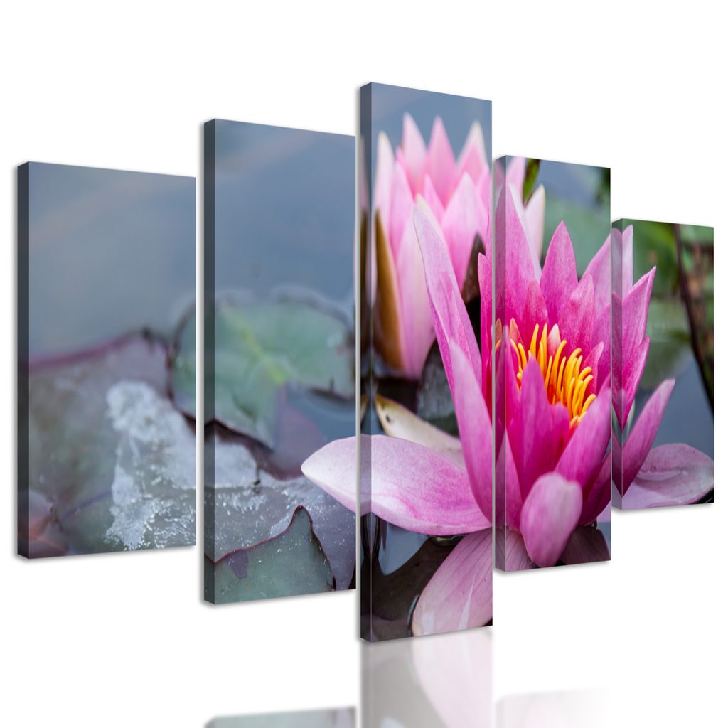 5-dielny obraz nádherné ružové lekno