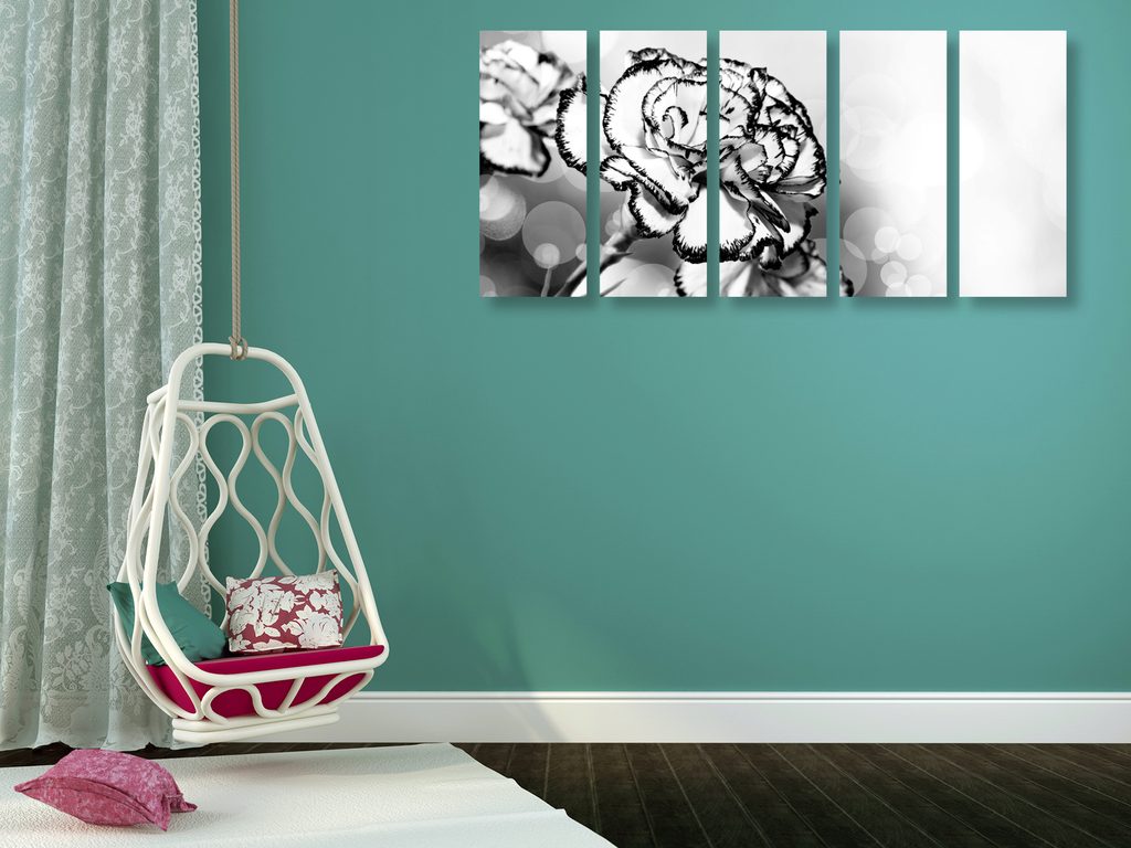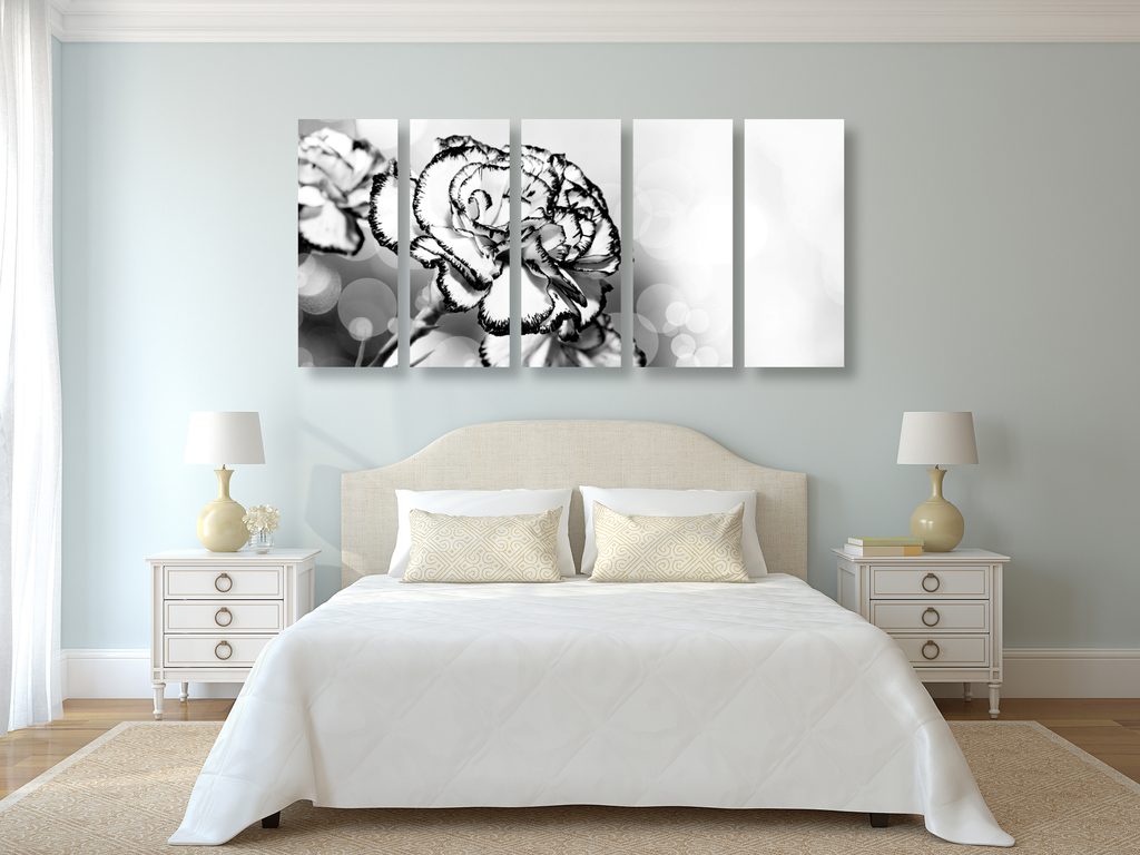 5-dielny obraz nádherný karafiát v čiernobielom prevedení