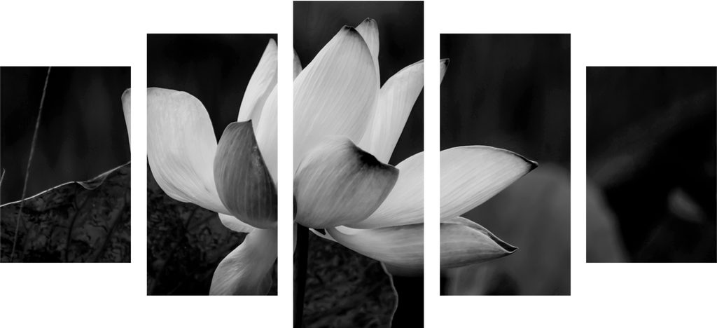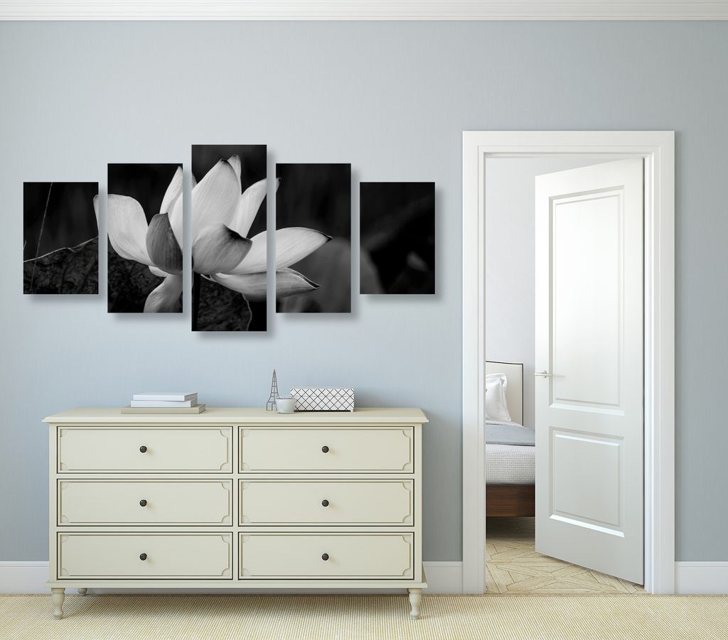 5-dielny obraz nádherny kvet v čiernobielom prevedení
