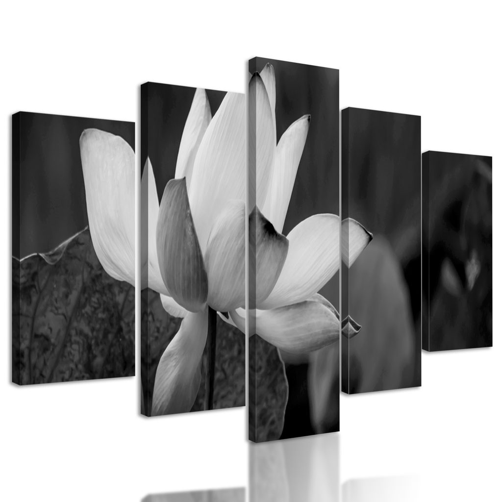 5-dielny obraz nádherné lekno v čiernobielom prevedení