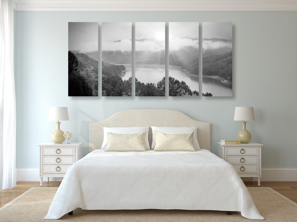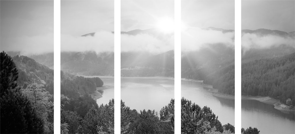 5-dielny obraz nádherný pohľad na letnú prírodu v čiernobielom prevedení