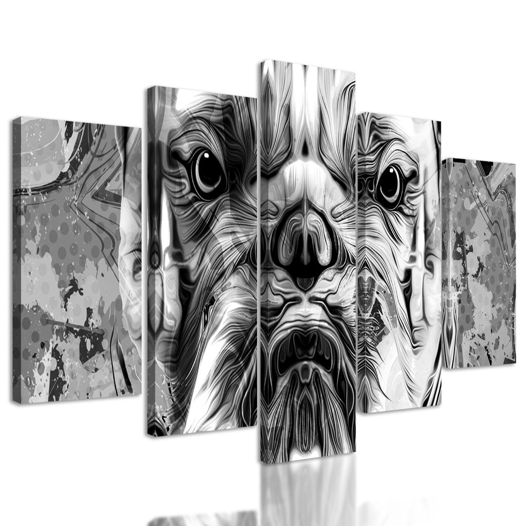 5-dielny obraz nahnevaný buldoček v čiernobielom prevedení