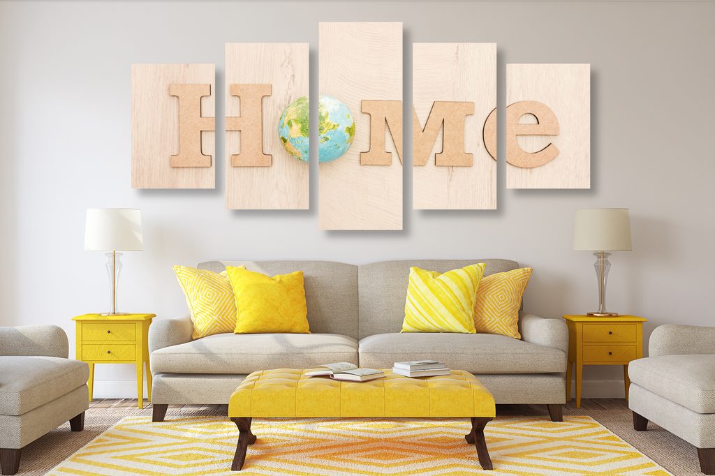 5-dielny obraz nápis home a planéta zem
