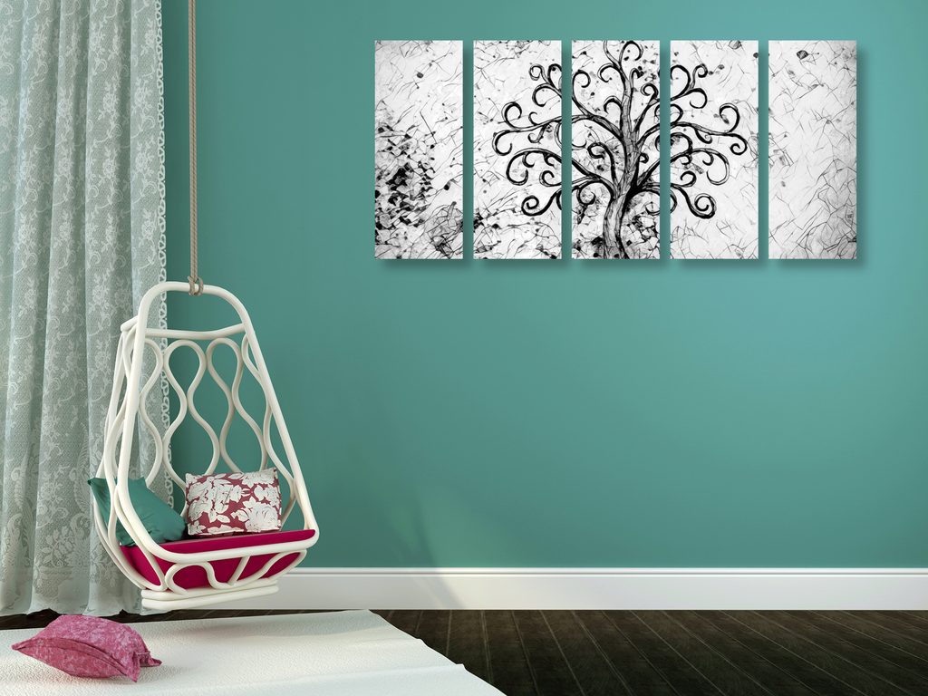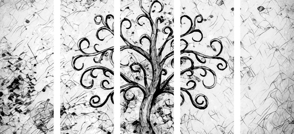 5-dielny obraz nehynúci strom života v čiernobielom prevedení