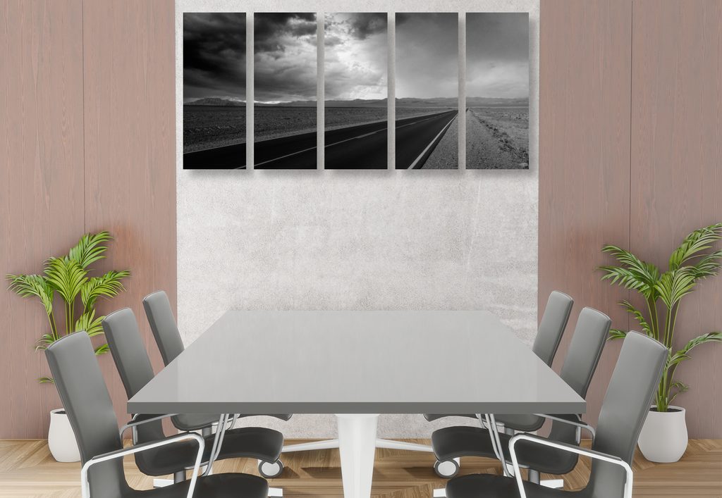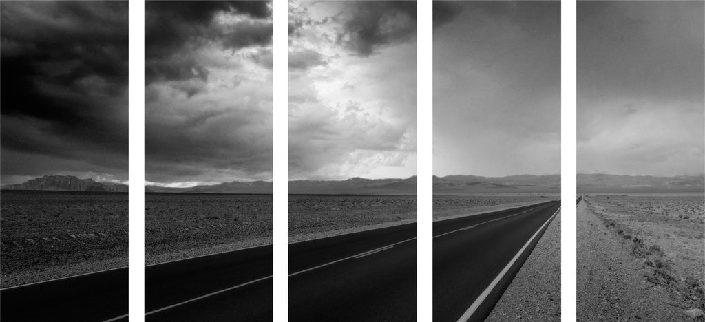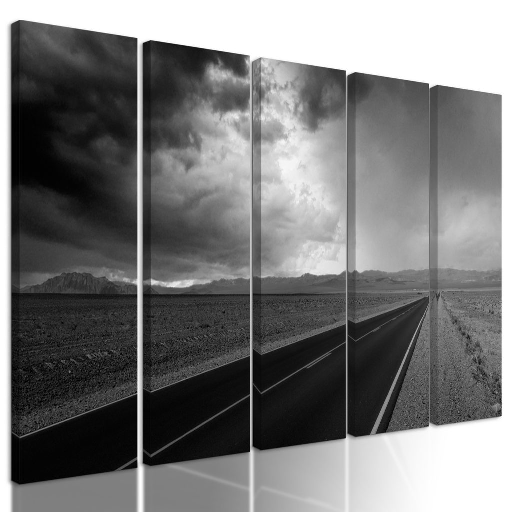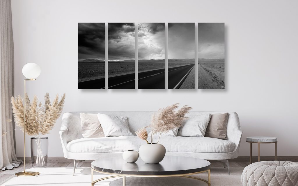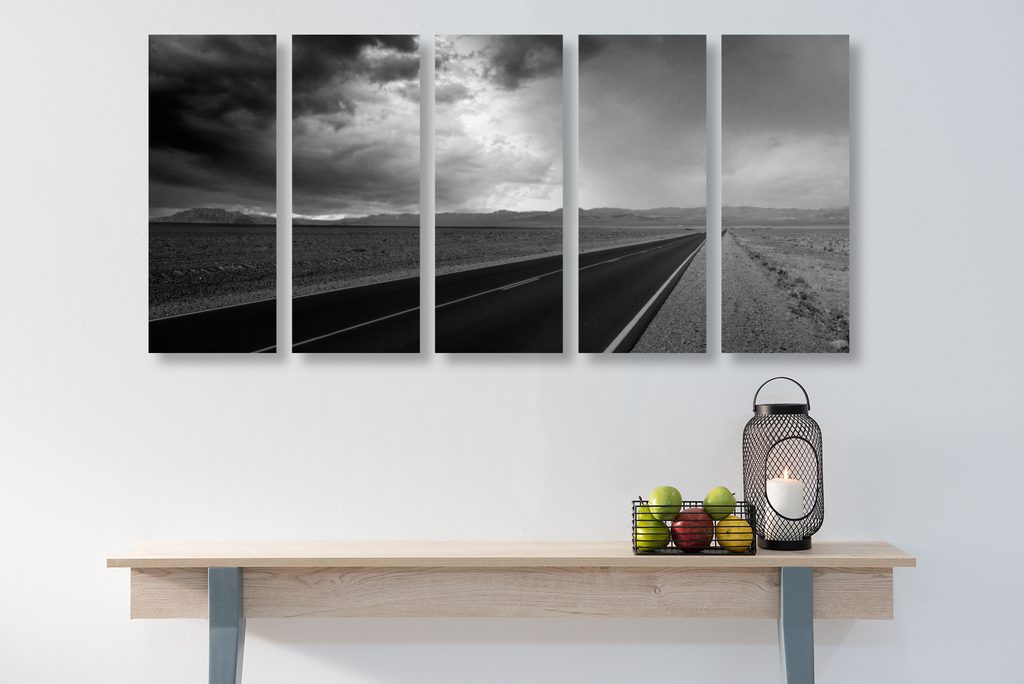 5-dielny obraz nekonečná cesta púšťou v čiernobielom prevedení