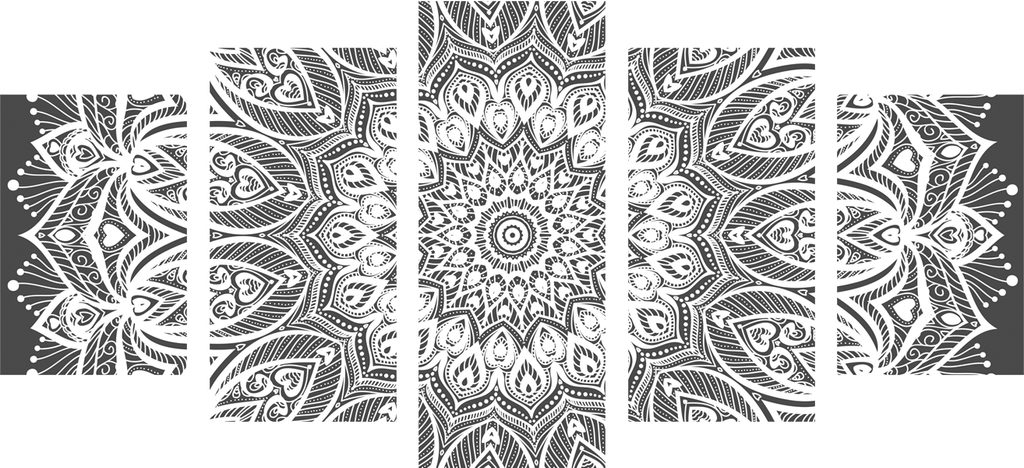 5-dielny obraz nekonečná Mandala v čiernobielom prevedení