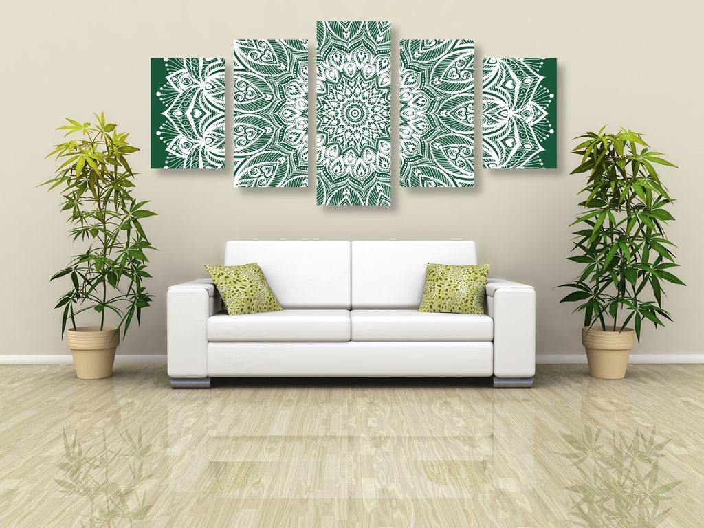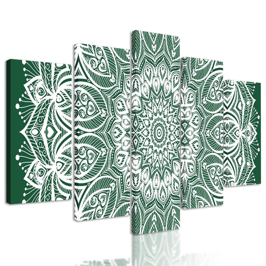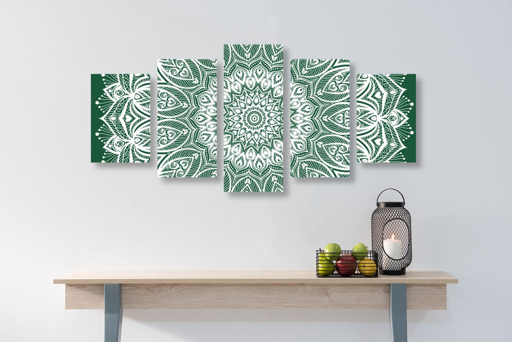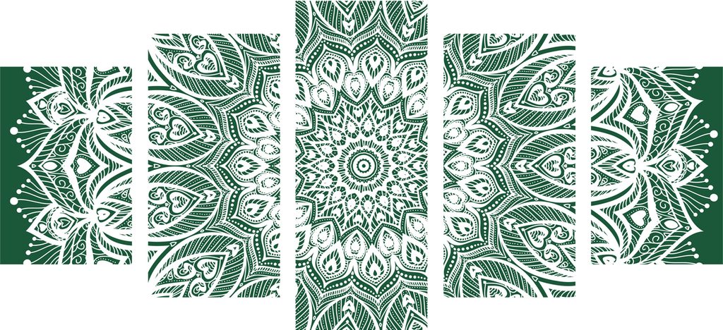 5-dielny obraz nekonečná Mandala v zelenom prevedení