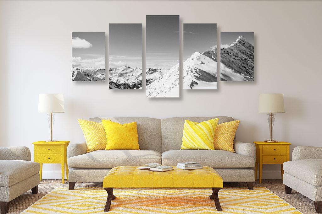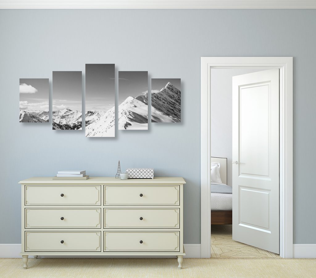 5-dielny obraz impozantná maľba krajiny v čiernobielom prevedení