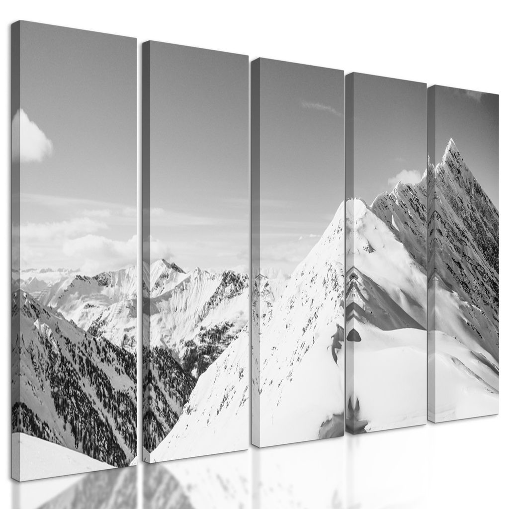 5-dielny obraz nekonečné kopce v čiernobielom prevedení