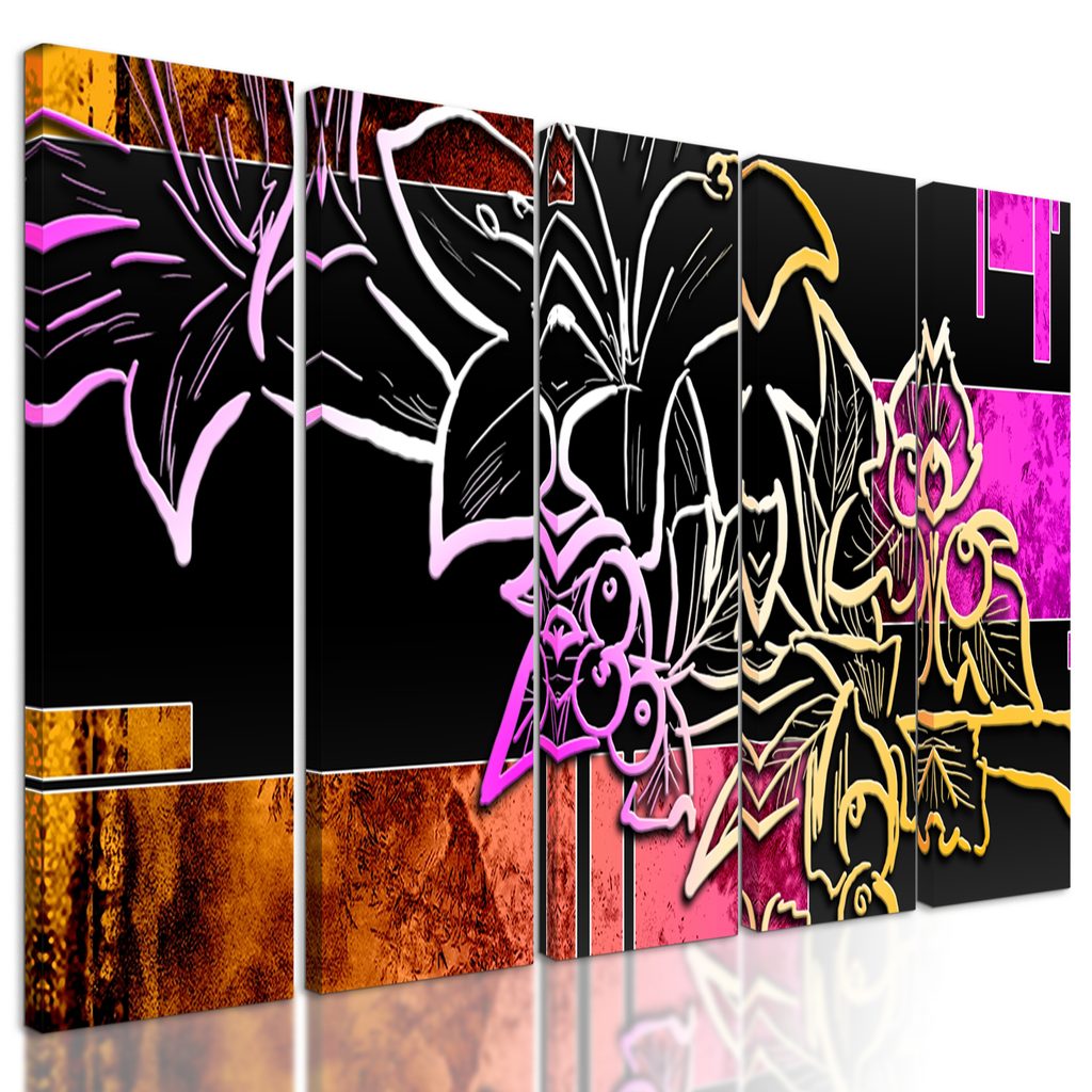 5-dielny obraz neónová abstraktná kvetina