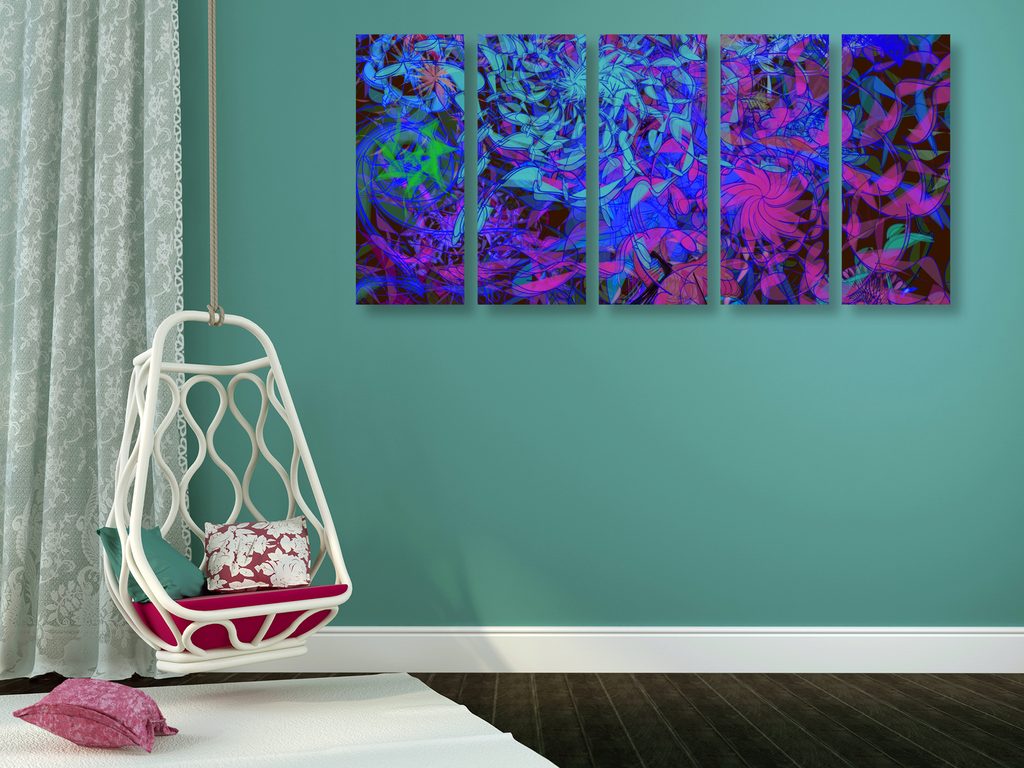 5-dielny obraz nevšedná abstrakcia v futuristickom prevedení