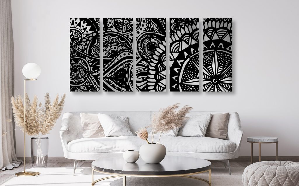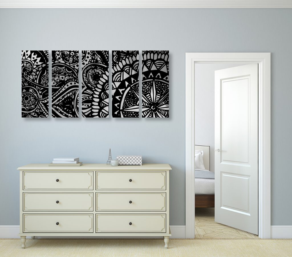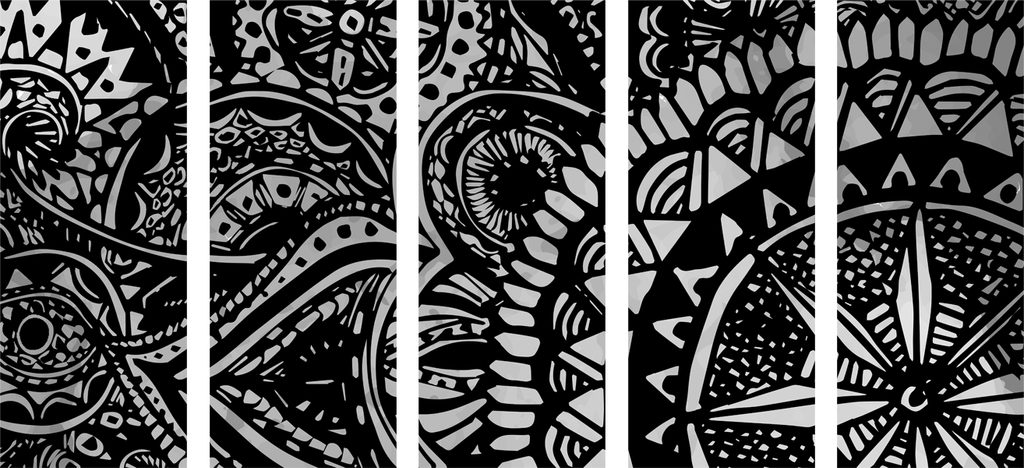 5-dielny obraz relaxačne SPA zátišie v čiernobielom prevedení