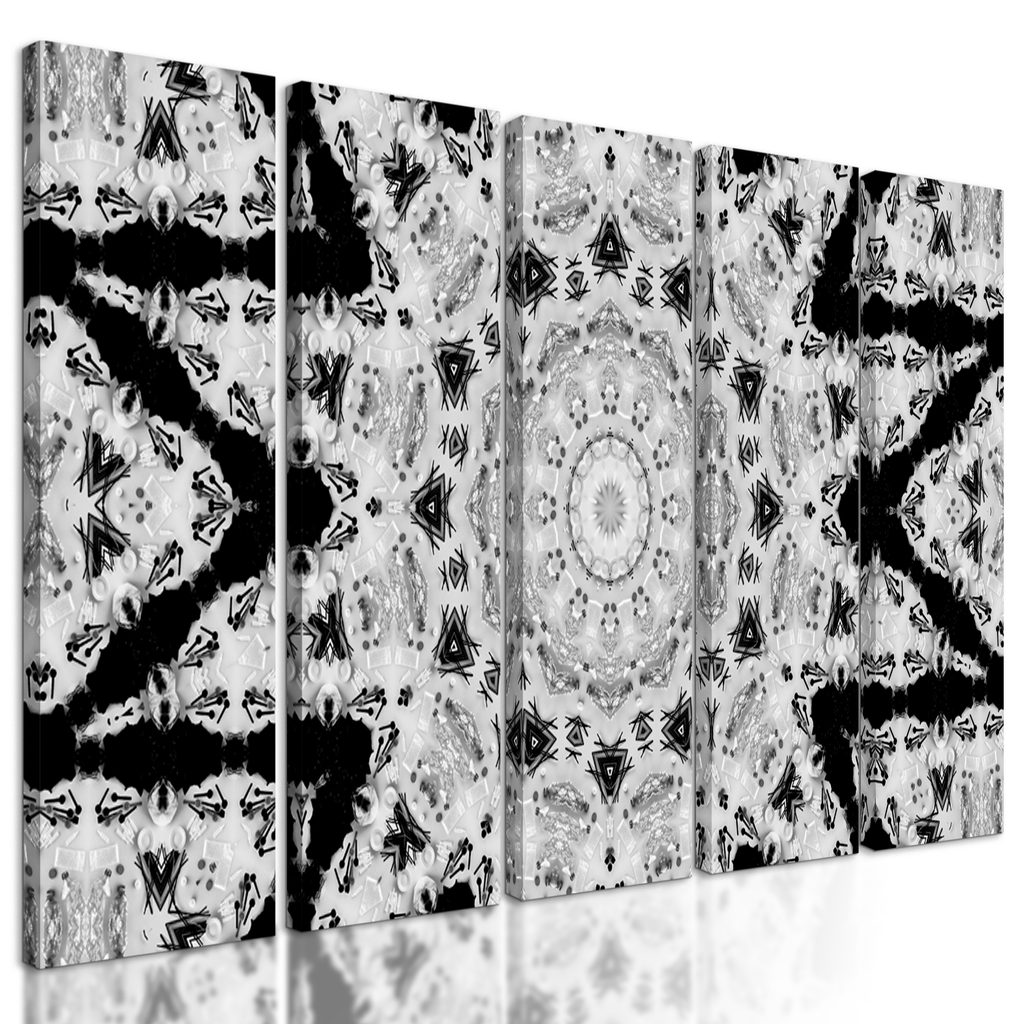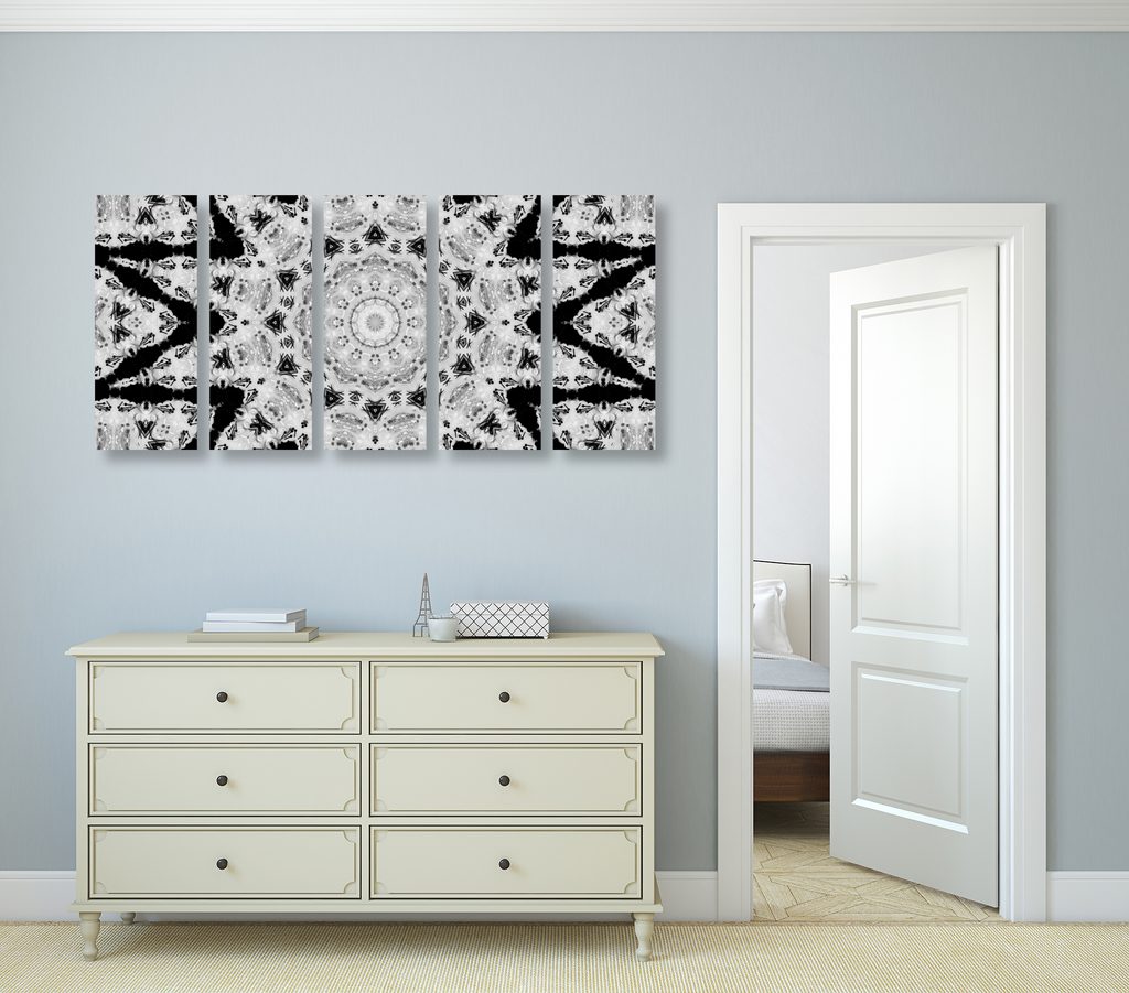 5-dielny obraz nevšedná mandala v čiernobielom prevedení