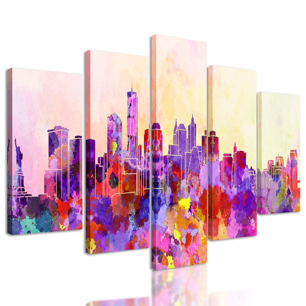 5-dielny obraz nočný Manhattan v čiernobielom prevedení