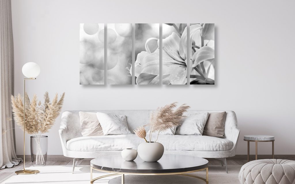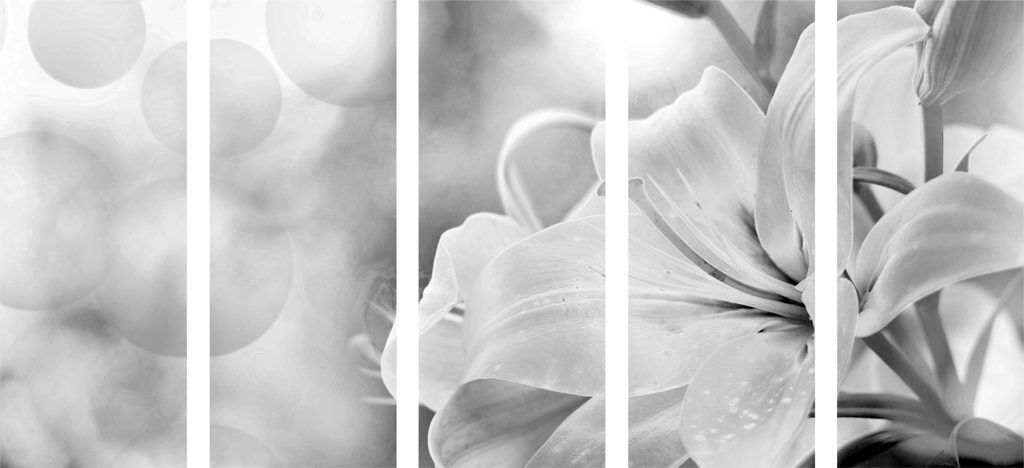 5-dielny obraz nežná ľalia v čiernobielom prevedení