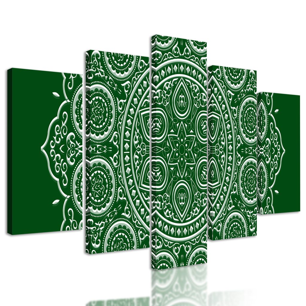 5-dielny obraz nežná Mandala na zelenom pozadí