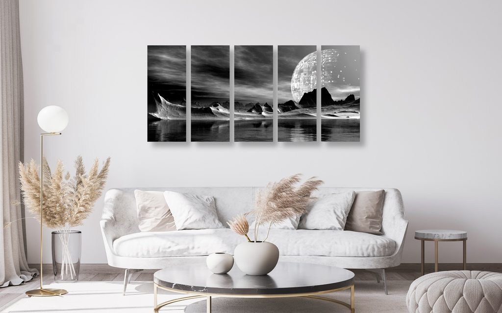 5-dielny obraz krásy Nórskej prírody v čiernobielom prevedení