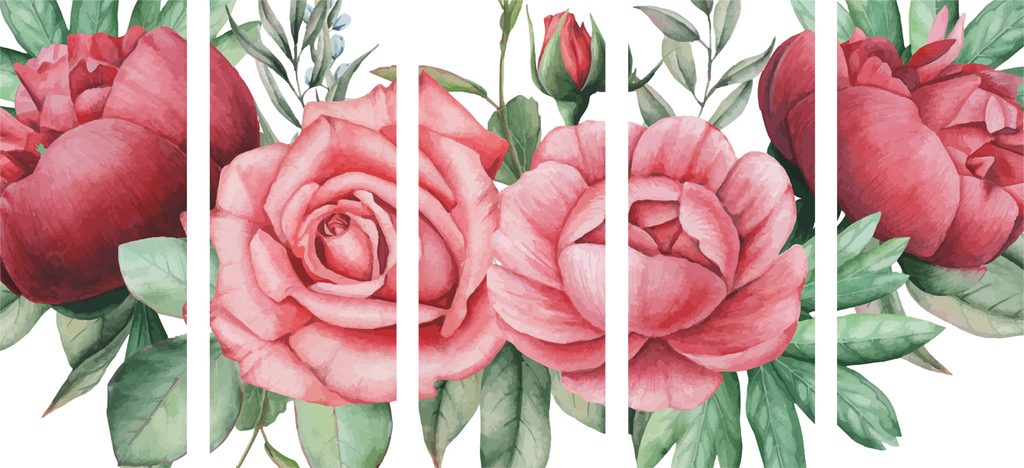 5-dielny obraz nežné splynutie ruží a listov