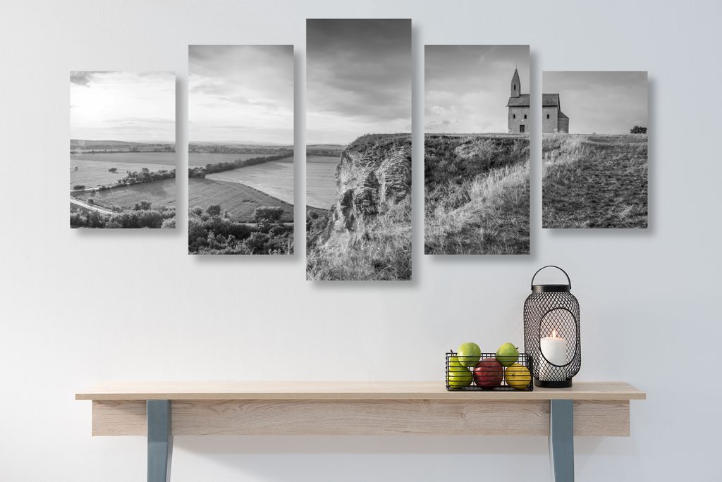 5-dielny obraz rozprávková krajinka v čiernobielom prevedení
