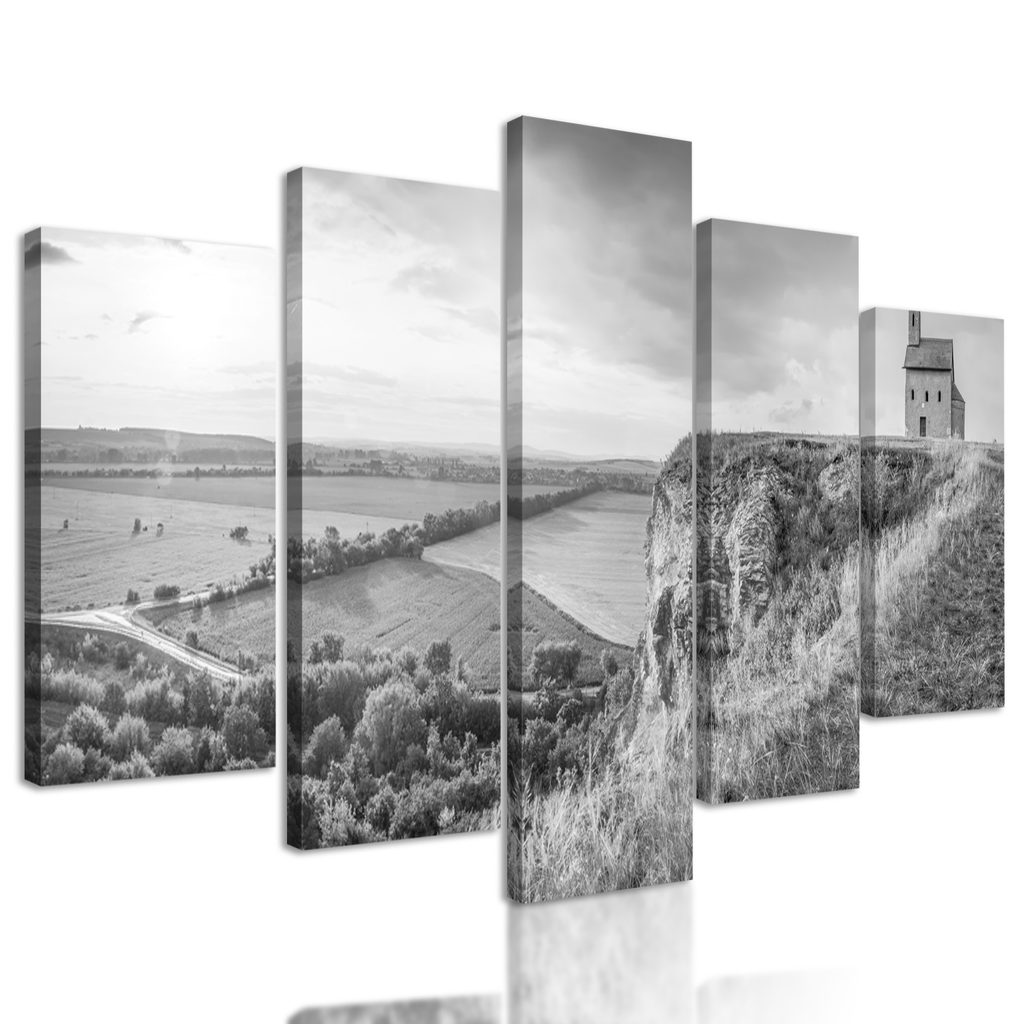 5-dielny obraz letný západ slnka v čiernobielom prevedení