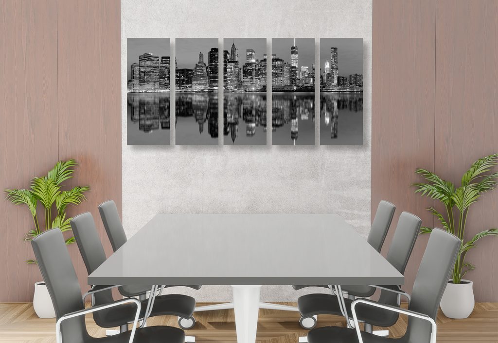5-dielny obraz nočný Manhattan v čiernobielom prevedení
