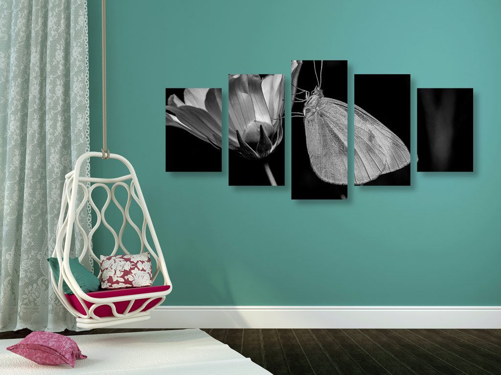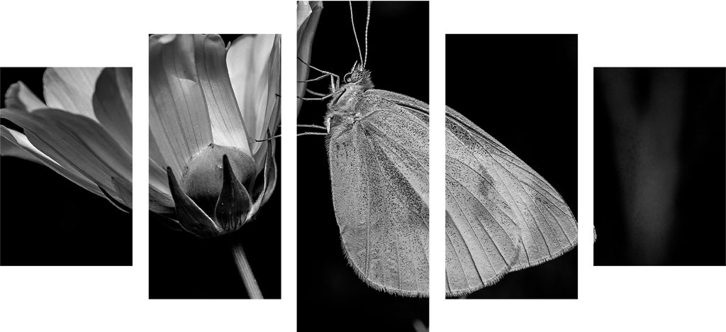 5-dielny obraz nočný motýľ v čiernobielom prevedení