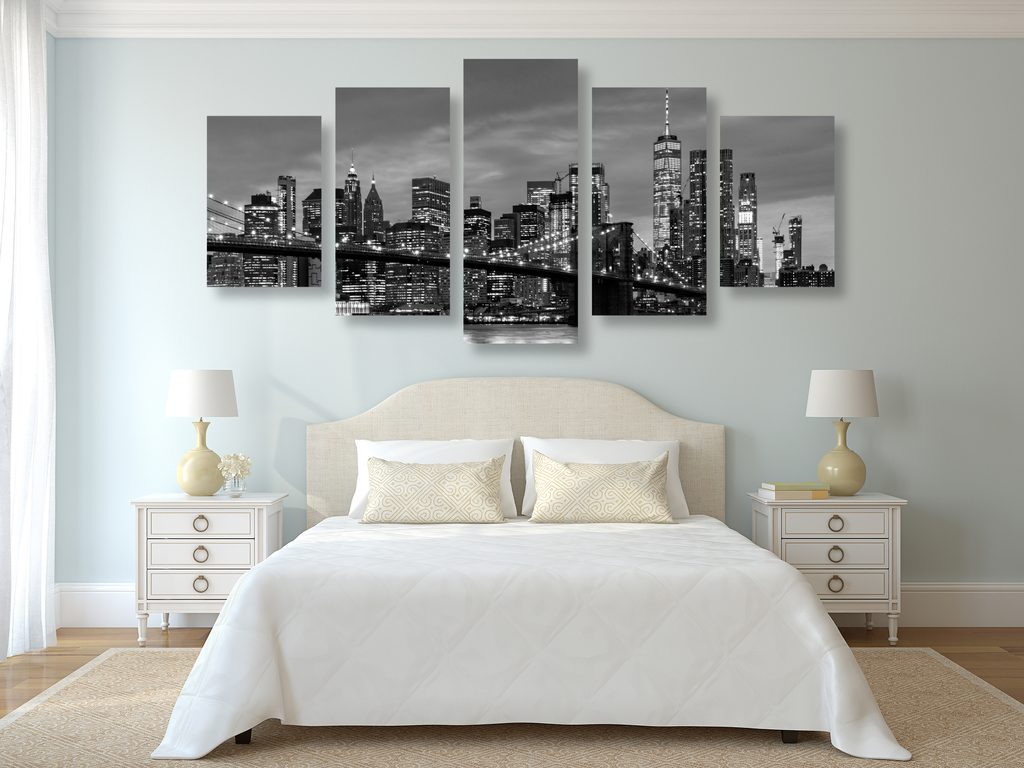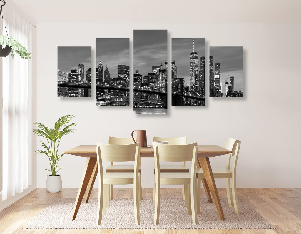 5-dielny obraz nočný pohľad na most Brooklyn v čiernobielom prevedení